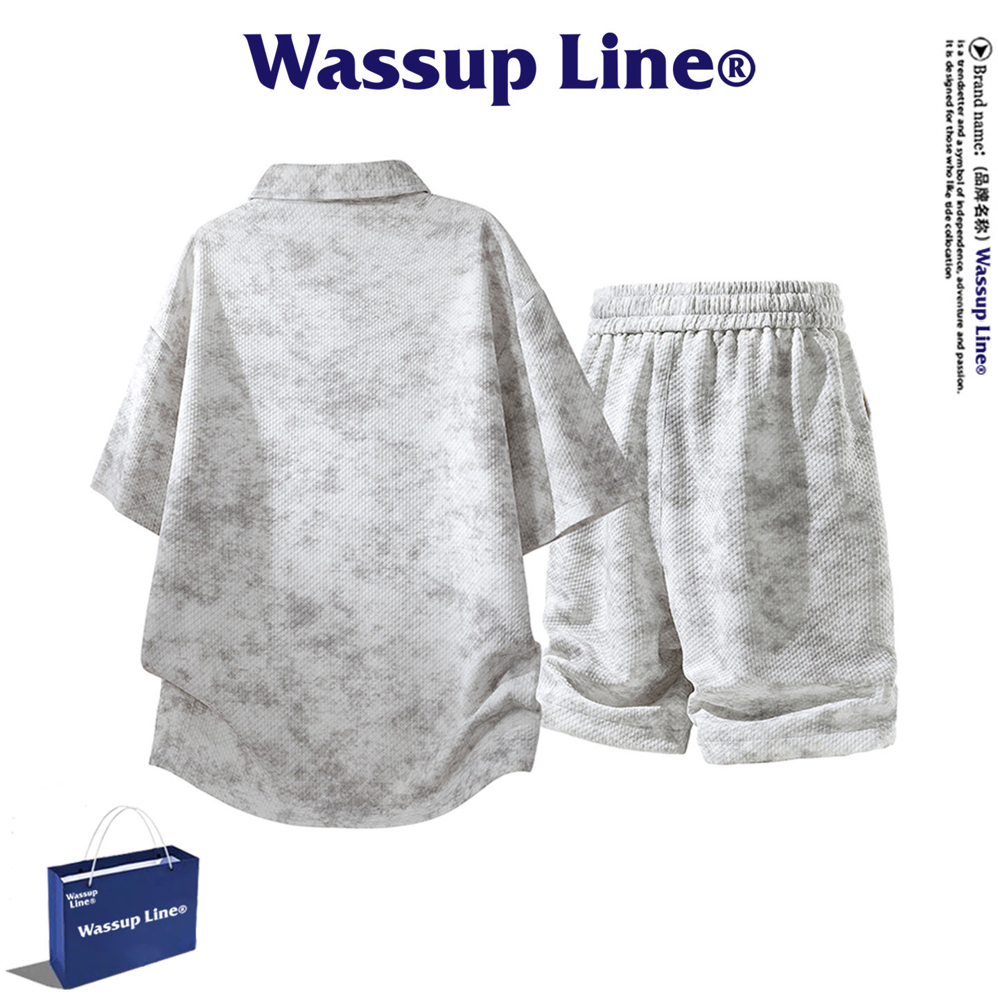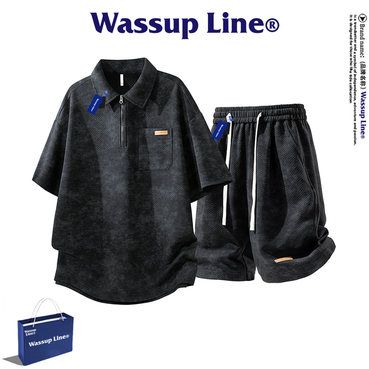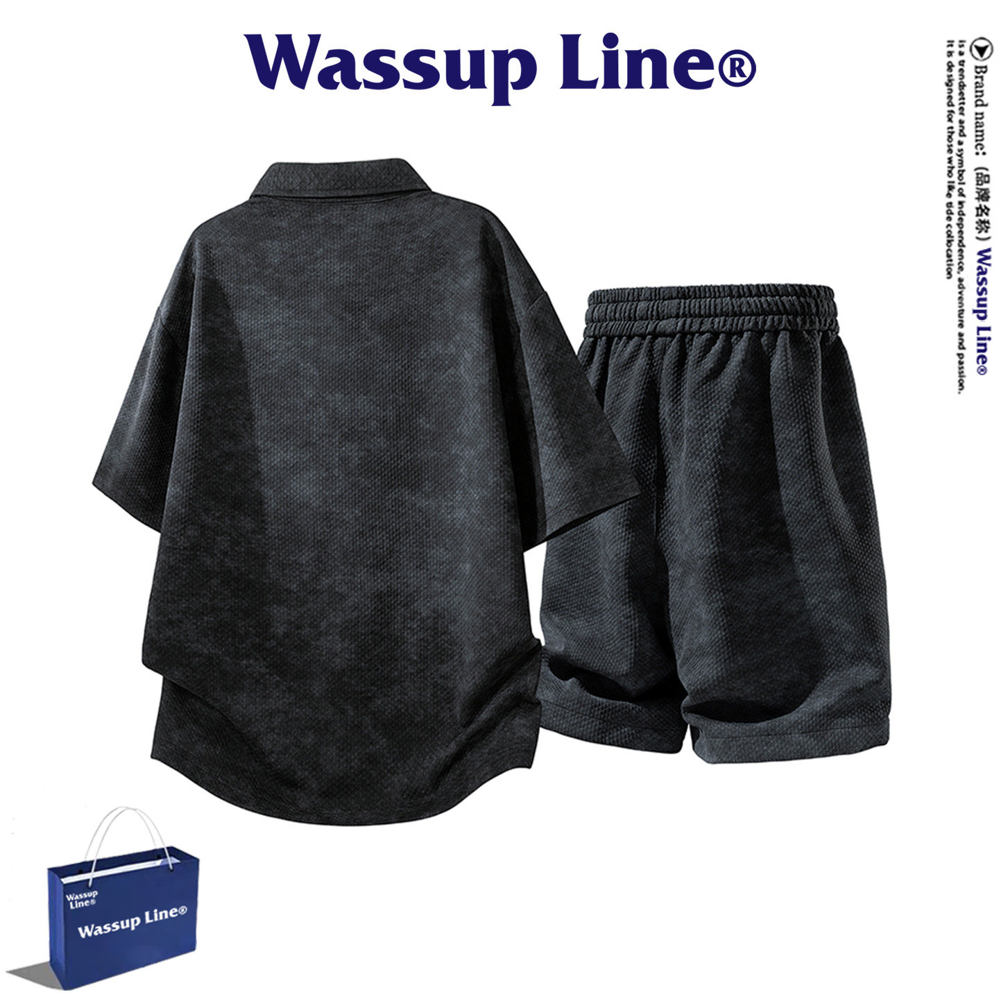 WASSUP Line潮牌休闲百搭套装男夏季翻领短袖T恤五分裤时尚两件套
