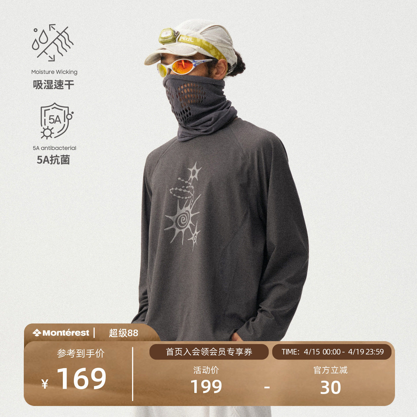 --------------------- 瞬时山野Monterest户外5A抗菌吸湿速干华夫格阳离子印花长袖T恤 【原售价】209元 【现售价】169元 【推荐理由】