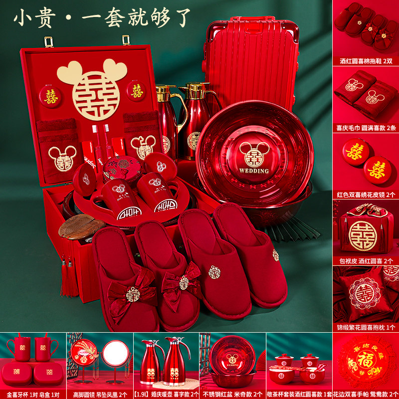 --------------------- 陪嫁物品女方全套娘家嫁妆箱新婚洗漱喜盆毛巾备婚庆结婚用品大全 --------------------- --------------------- 【原价】197元 【券后价】168元