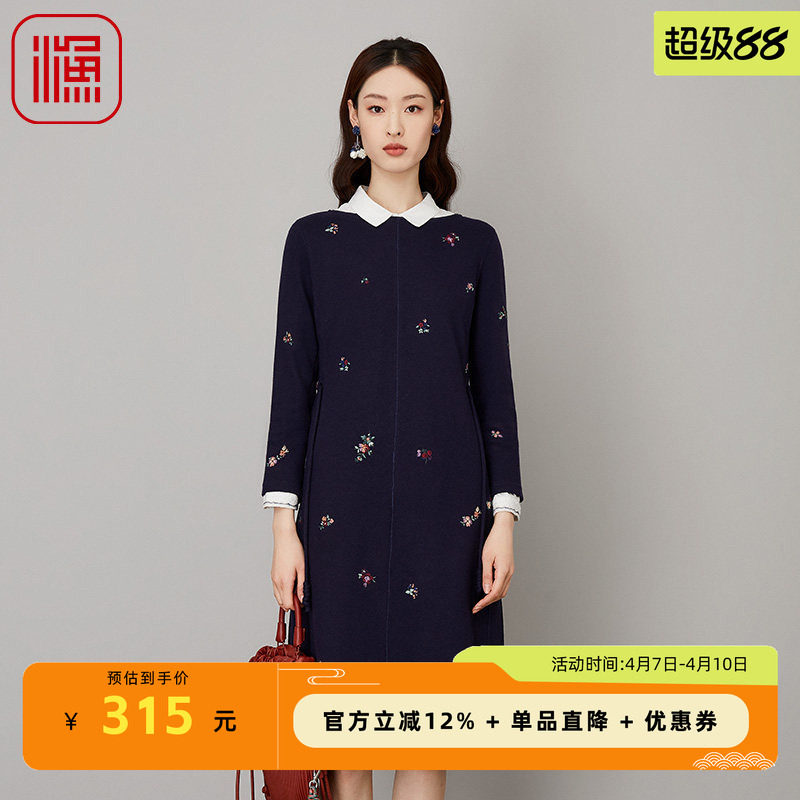 --------------------- 渔牌女装秋装女2023年新款呢刺绣针织系带收腰连衣裙FGFC0015 --------------------- --------------------- 【原价】2276元 【券后价】314元