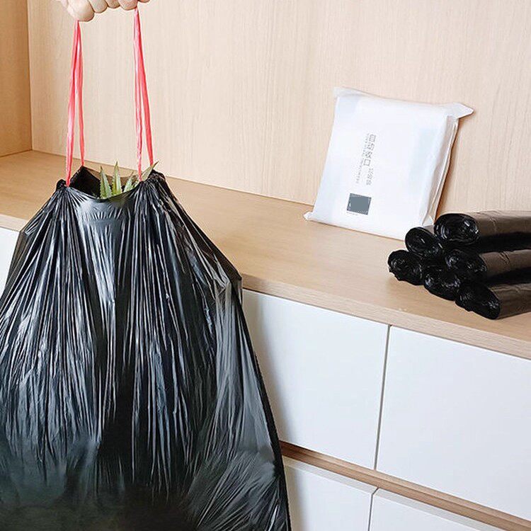 淘宝抽绳国标厚度垃圾袋大号易撕型家用办公黑白45x50cm大口径垃圾袋