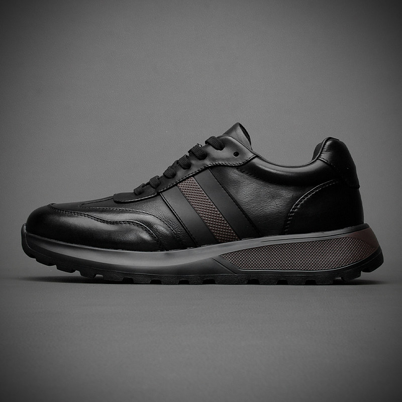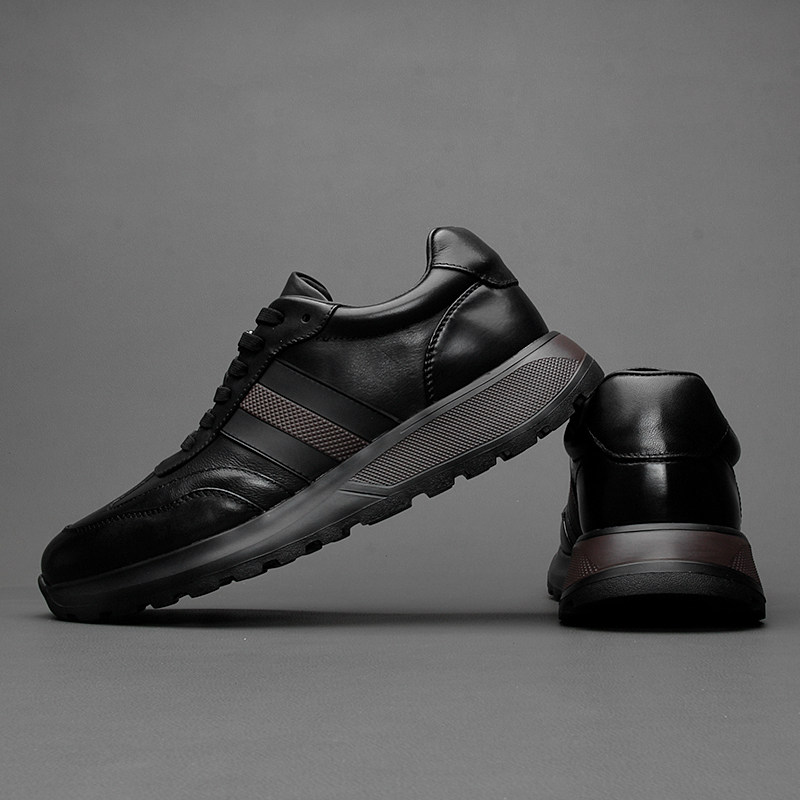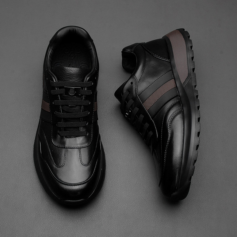 欧洲站男鞋真皮休闲皮鞋男士百搭厚底潮鞋黑色透气低帮防滑休闲鞋