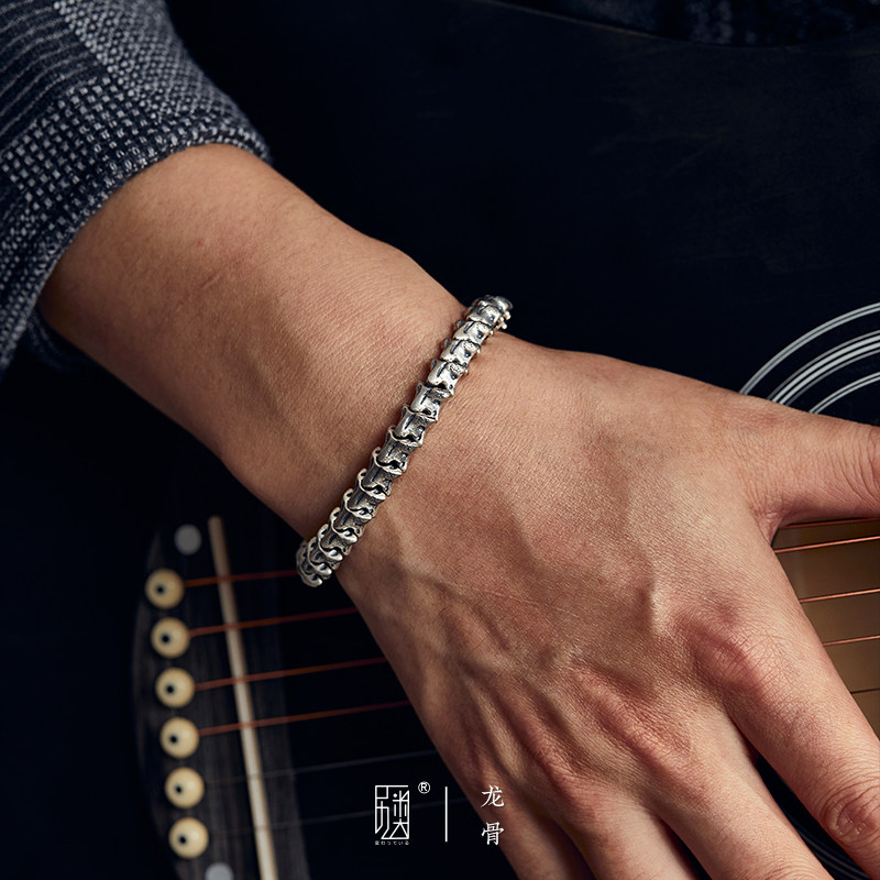 龙骨-纯银手链男士复古银饰品首饰编织手绳送人礼物