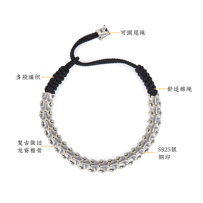 --------------------- 龙骨-纯银手链男士复古银饰品首饰编织手绳送人礼物 --------------------- --------------------- 【原价】858元 【券后价】850元