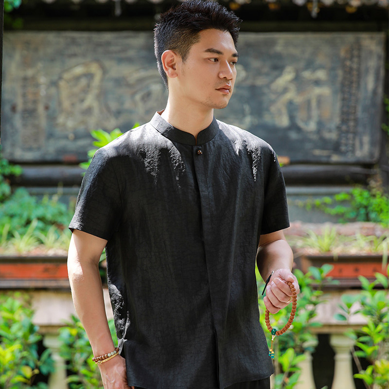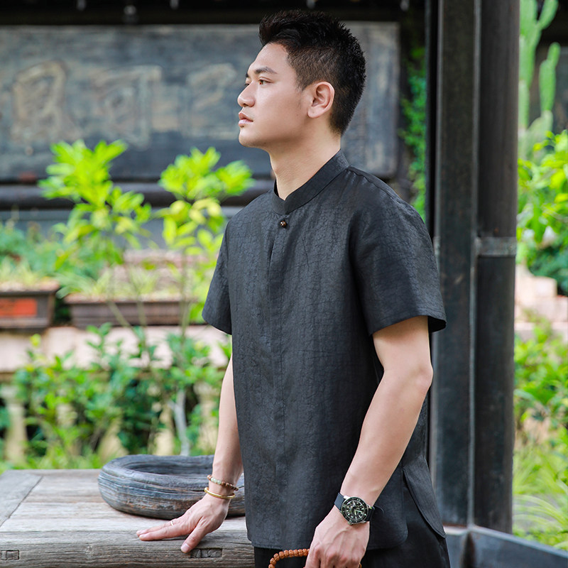 --------------------- 点醉三重门2026年新款真丝香云纱夏季中式衬衣短袖男唐装上衣日常 【原售价】980元 【现售价】776元 【推荐理由】
