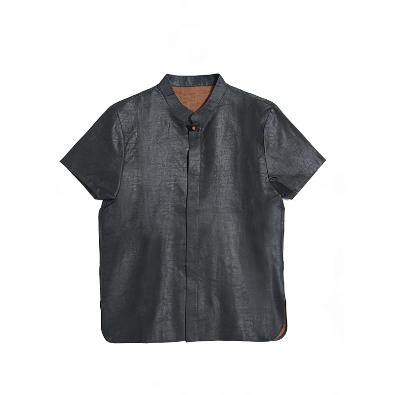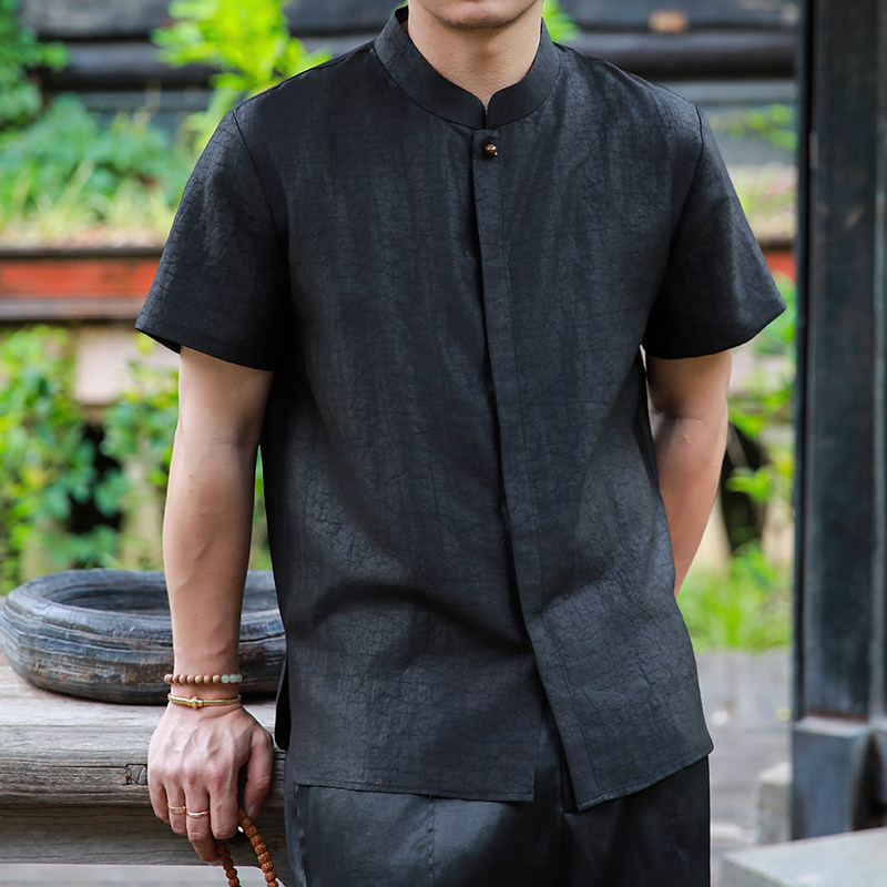 点醉三重门2026年新款真丝香云纱夏季中式衬衣短袖男唐装上衣日常