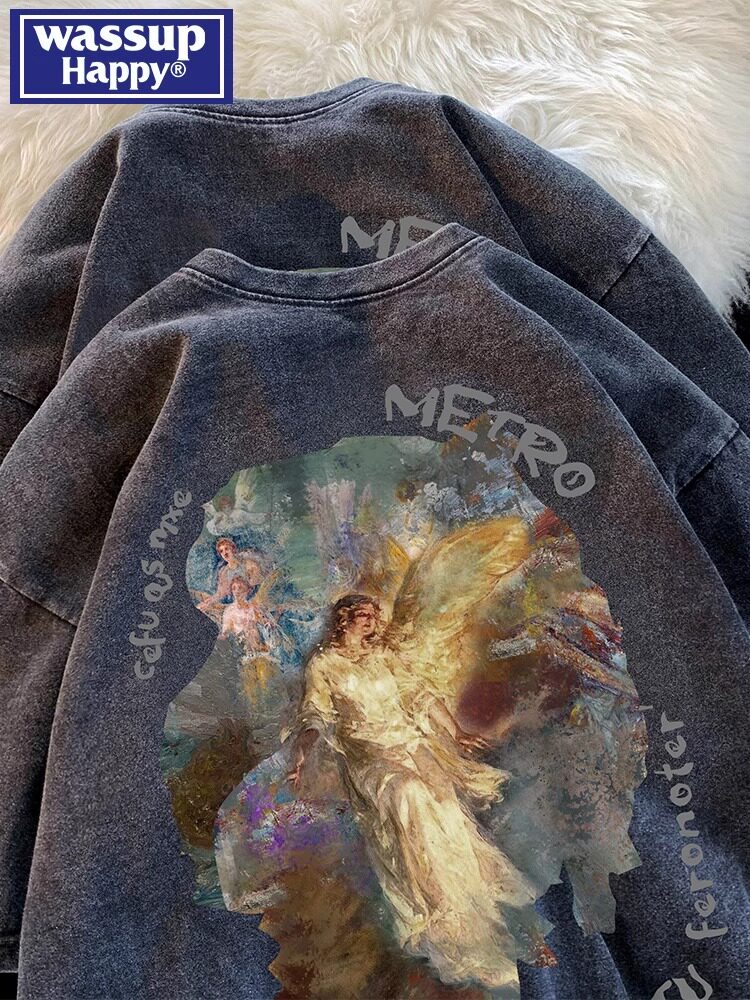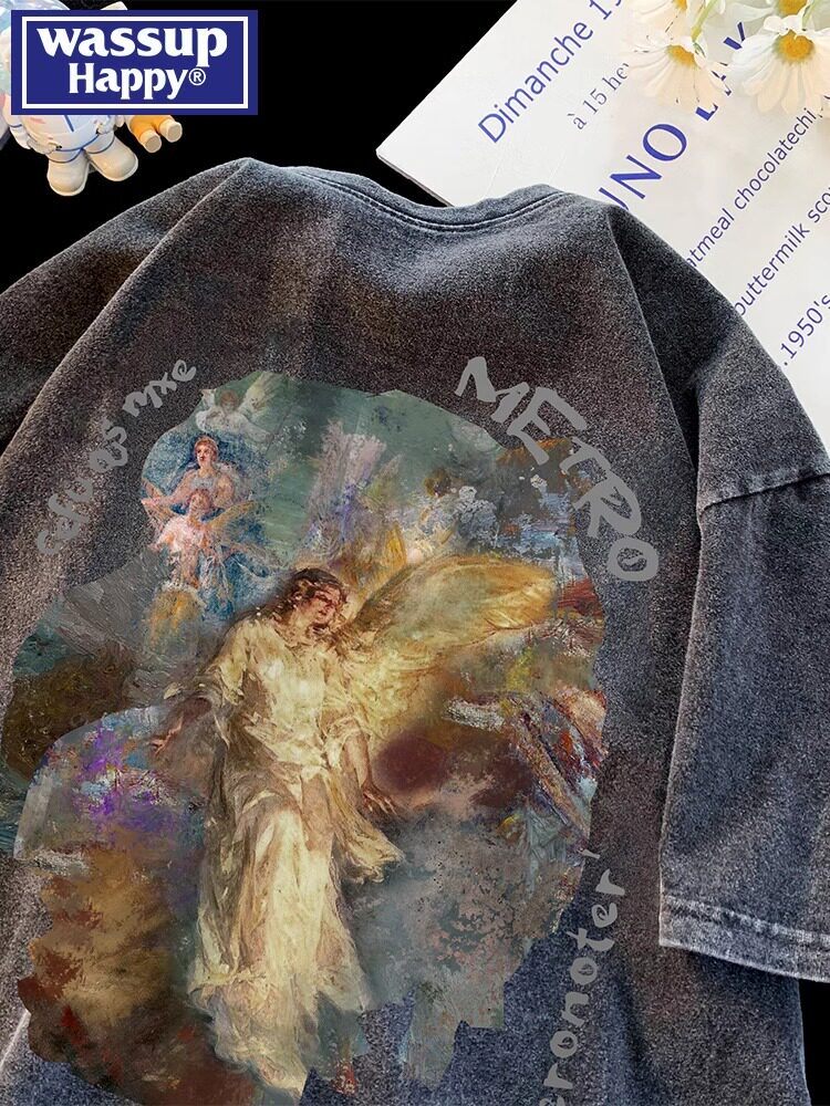 --------------------- wassup happy美式复古短袖t恤男夏季水洗做旧上衣服潮流潮牌体恤 【原售价】499元 【现售价】139元 【推荐理由】