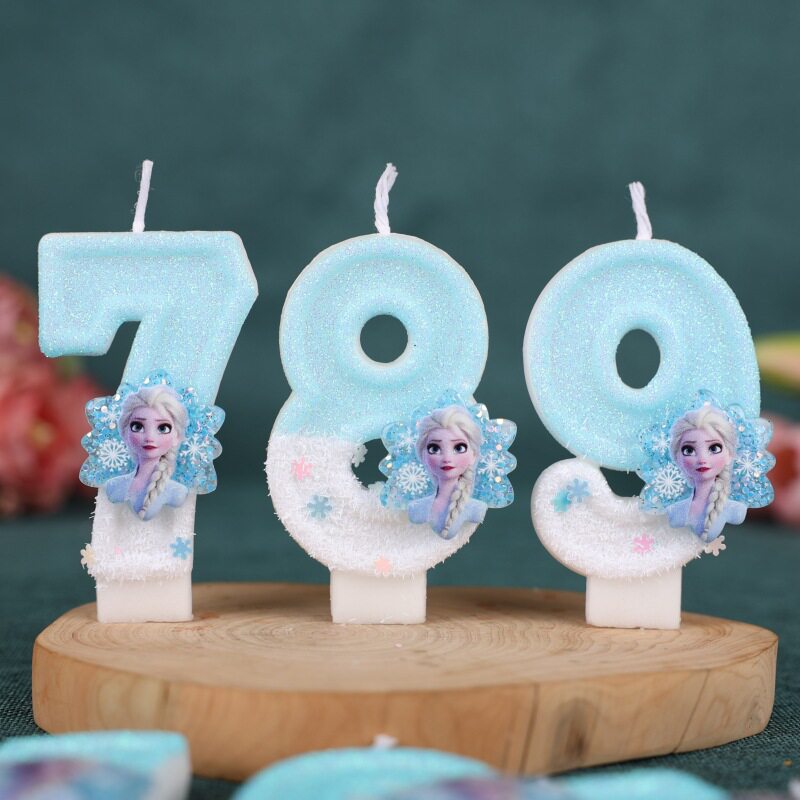 淘宝冰雪奇缘公主蓝色雪花创意数字蜡烛儿童主题生日派对布置蛋糕装饰