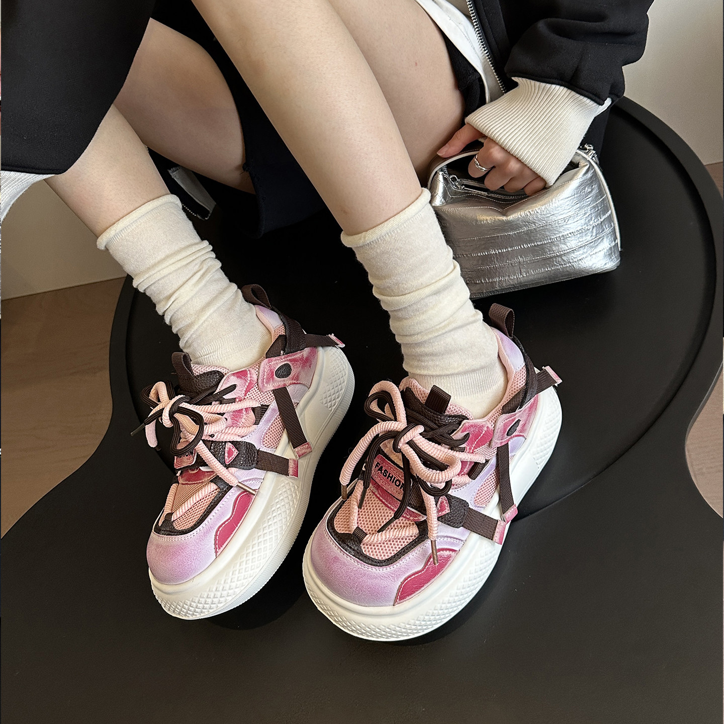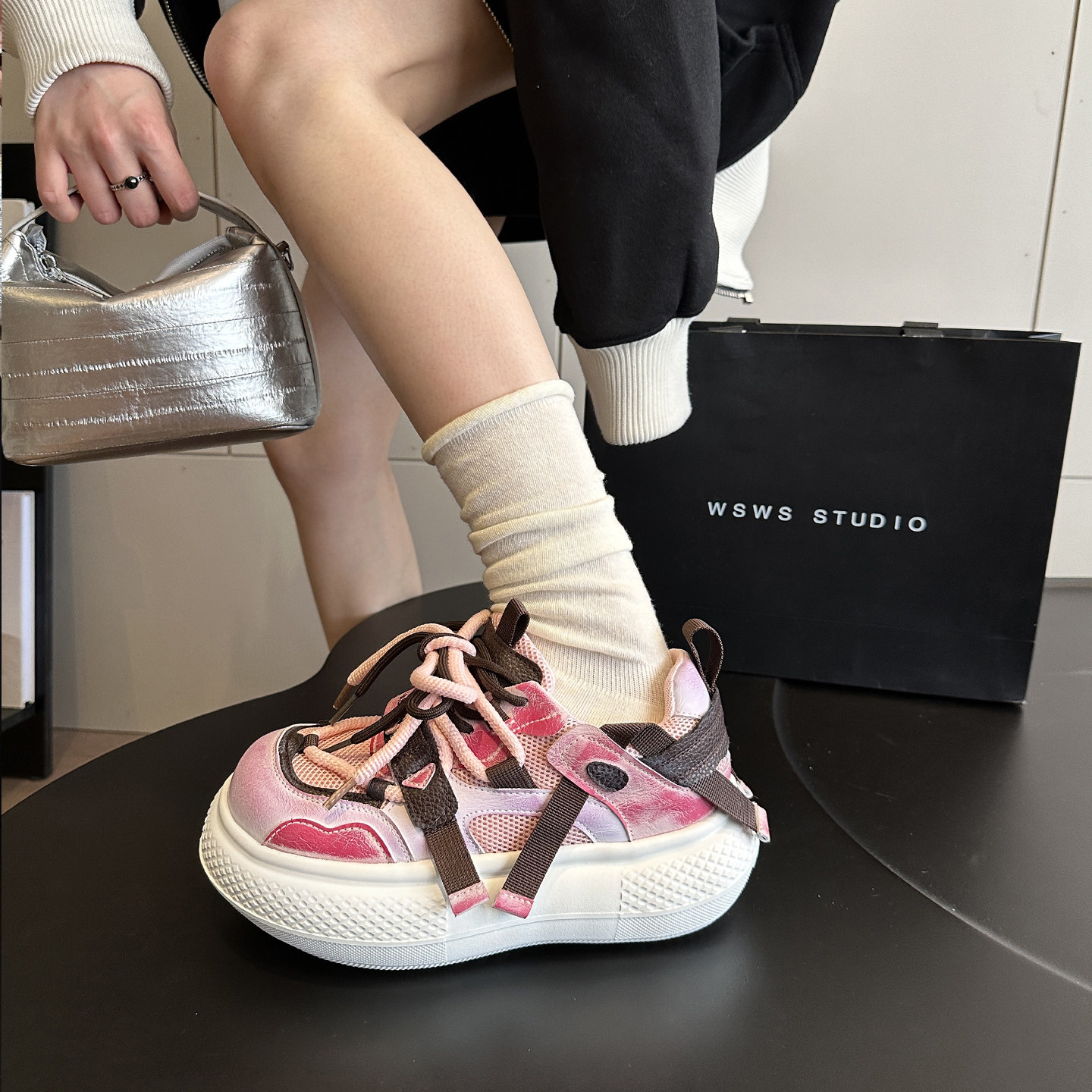 WSWS|国潮炸街2026新款小众大头丑萌鞋做旧轻便厚底鞋女面包板鞋