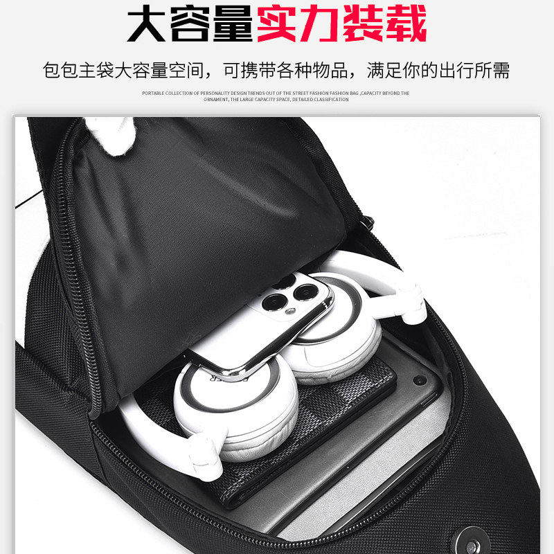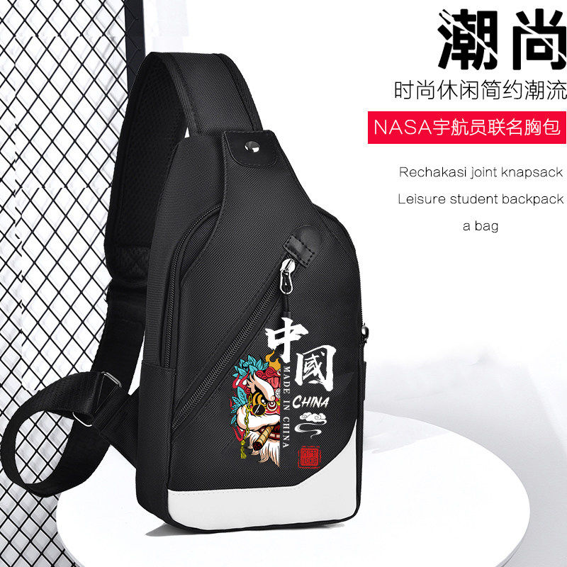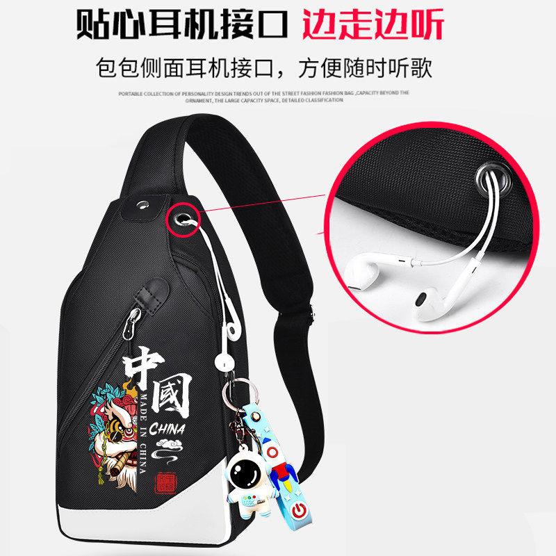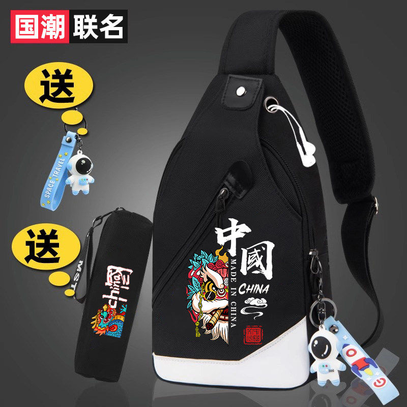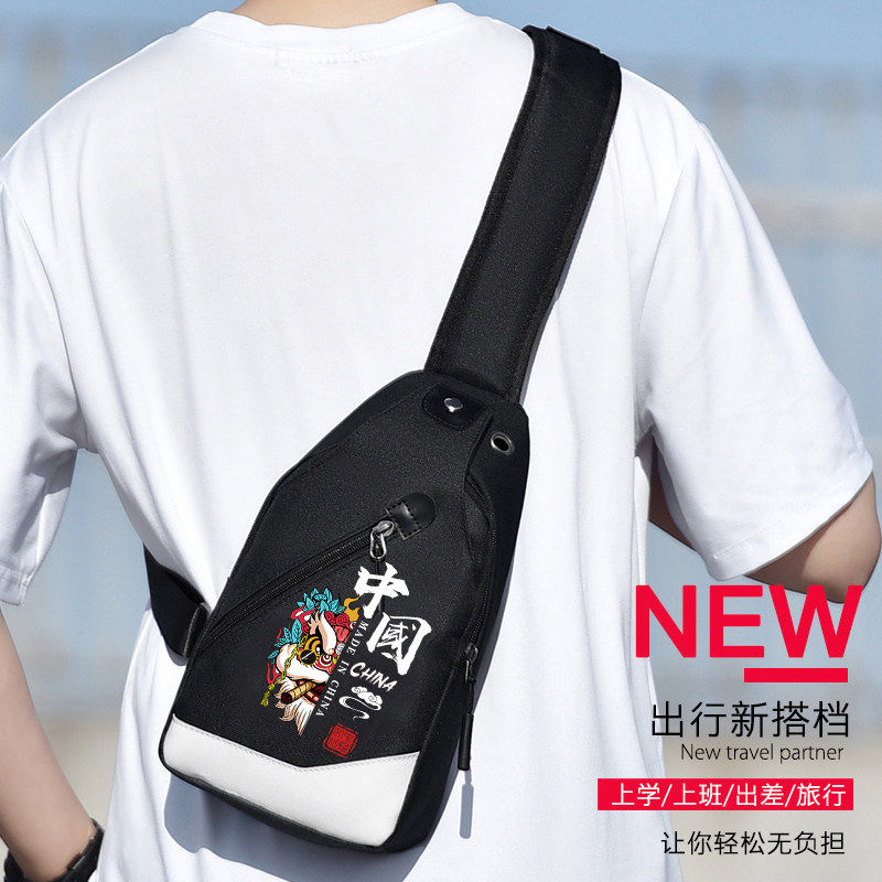 新款胸包男斜挎包学生国潮舞狮大容量单肩包多功能潮牌斜背包小包