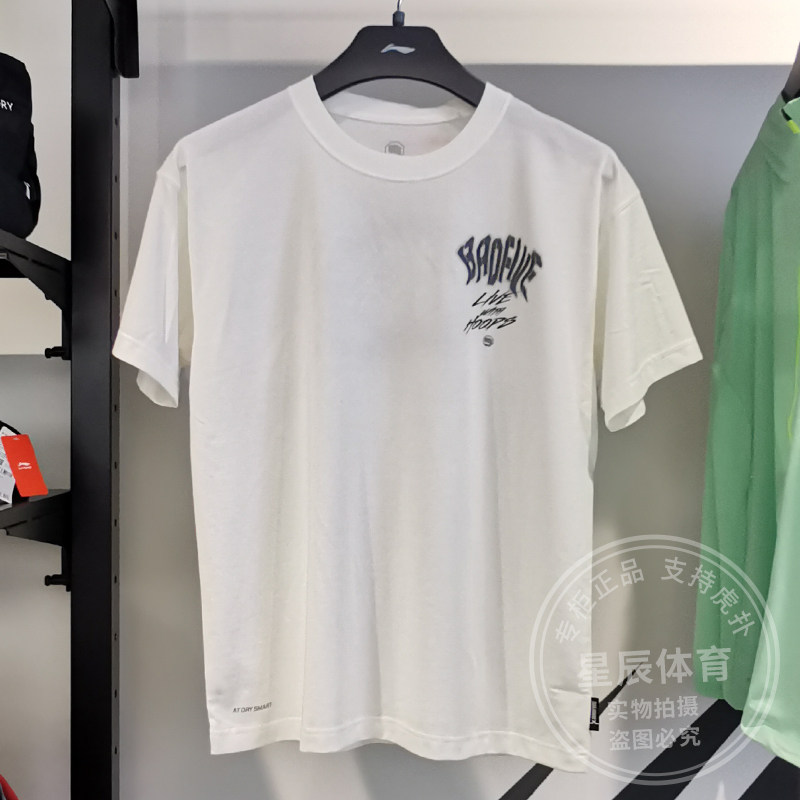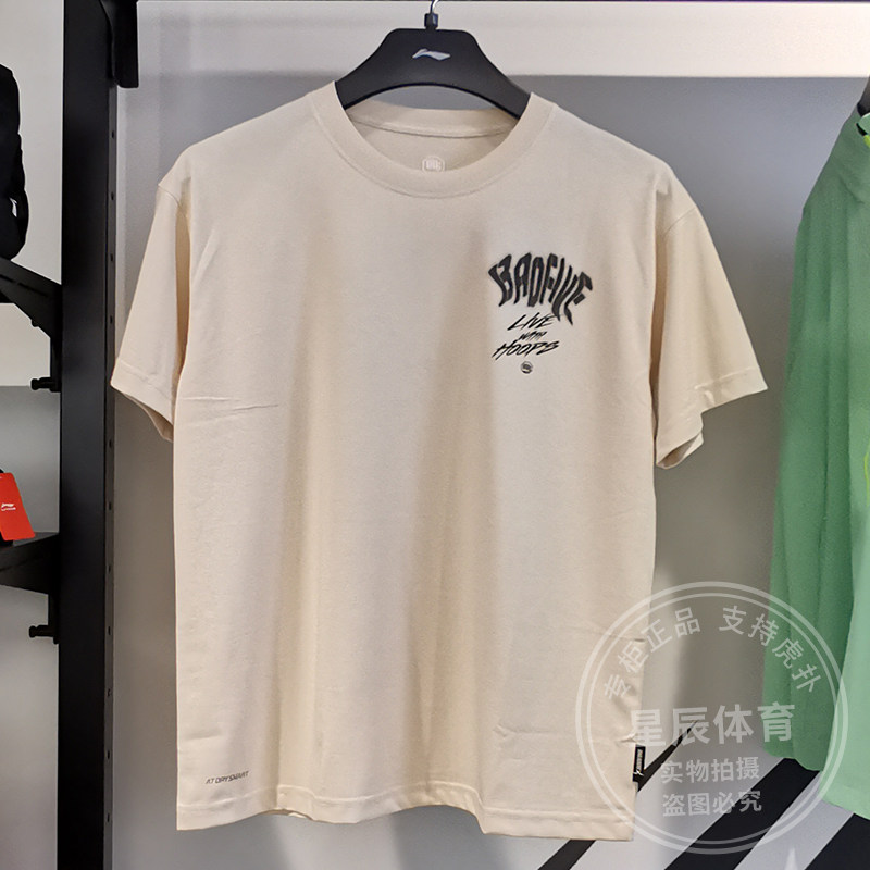 李宁短袖2024夏季新款BADFIVE男子吸湿排汗文化衫运动T恤AHSU423
