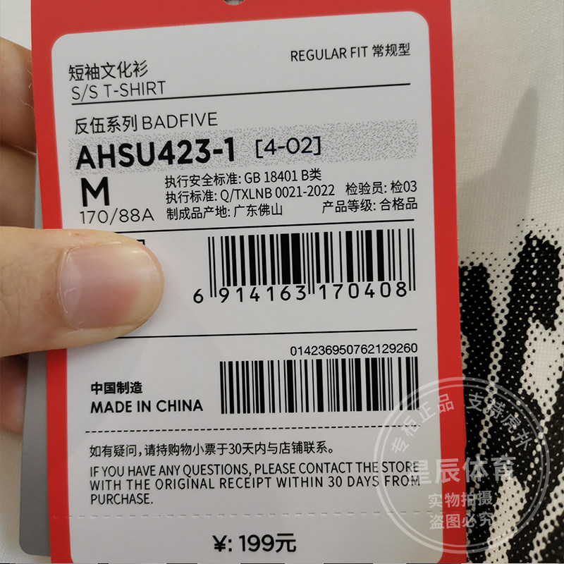 --------------------- 李宁短袖2024夏季新款BADFIVE男子吸湿排汗文化衫运动T恤AHSU423 【原售价】105元 【现售价】66元 【推荐理由】