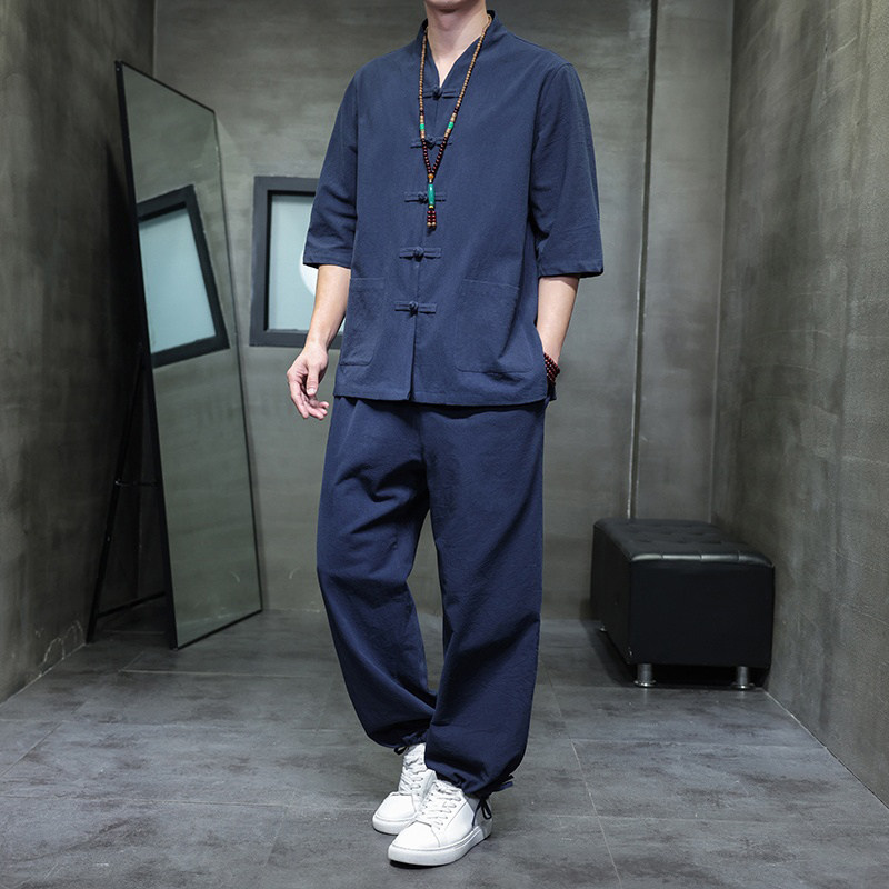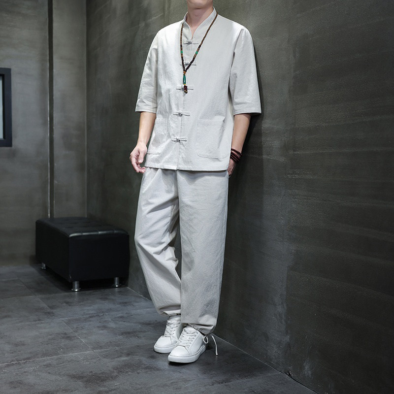 --------------------- 潮牌亚麻套装男夏季透气唐装中国风短袖衬衫新中式大码棉麻两件套 【原售价】488元 【现售价】429元 【推荐理由】