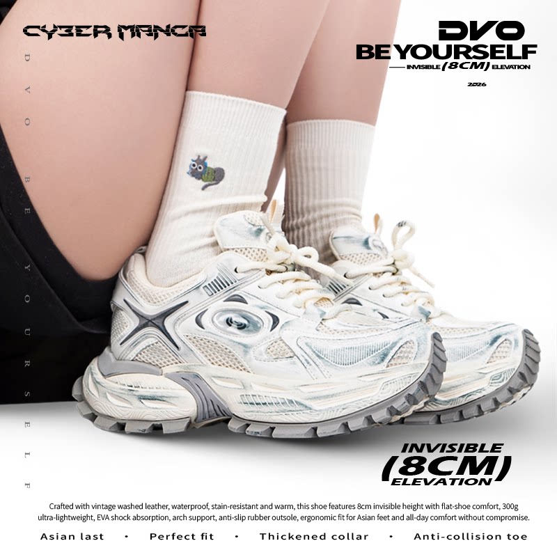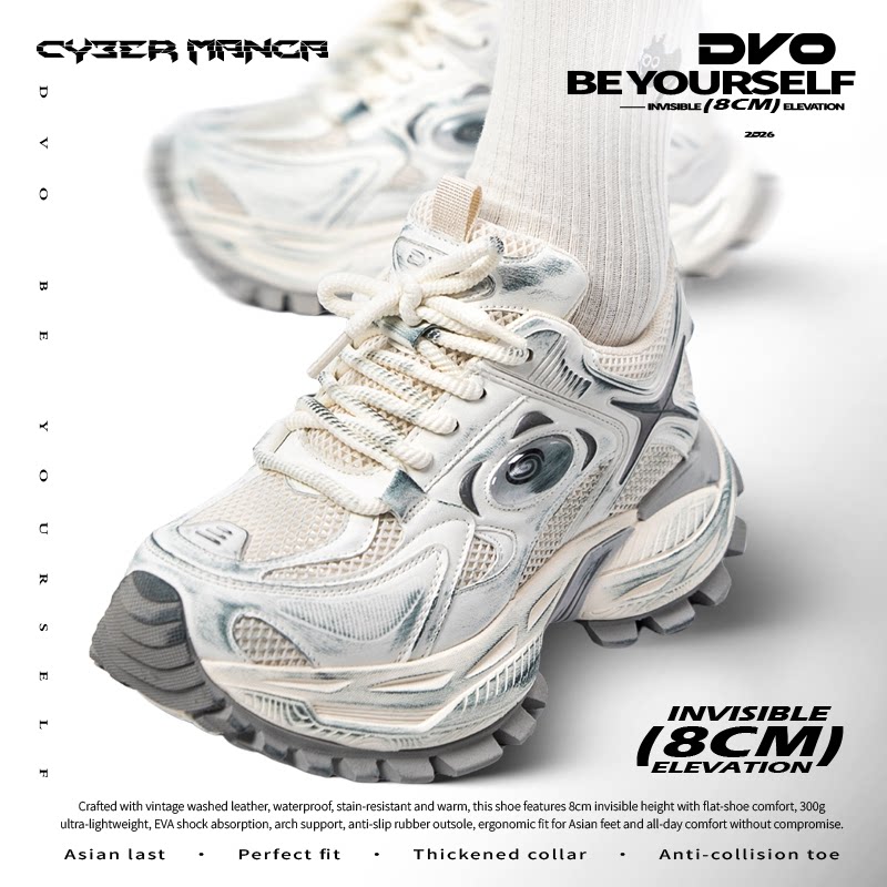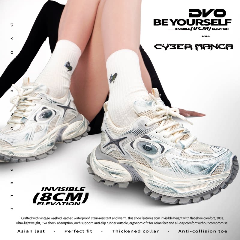 DVO8cm隐形内增高鞋男爆款潮牌原创老爹鞋厚底轻便运动休闲鞋女