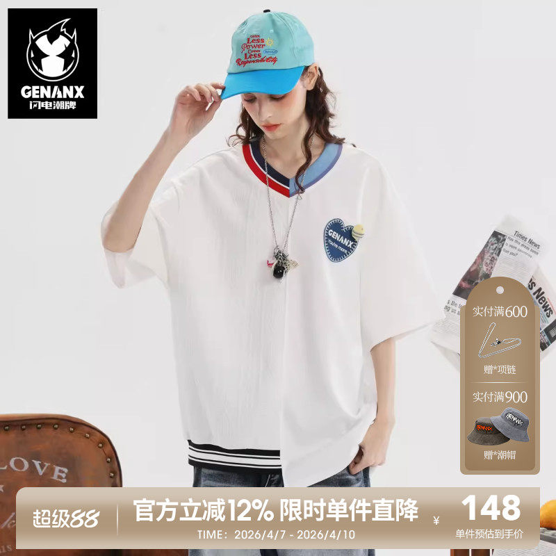 --------------------- GENANX闪电潮牌25夏季新款陈浚铭同款宽松高级拼接白色情侣装T恤 【原售价】169元 【现售价】148元 【推荐理由】