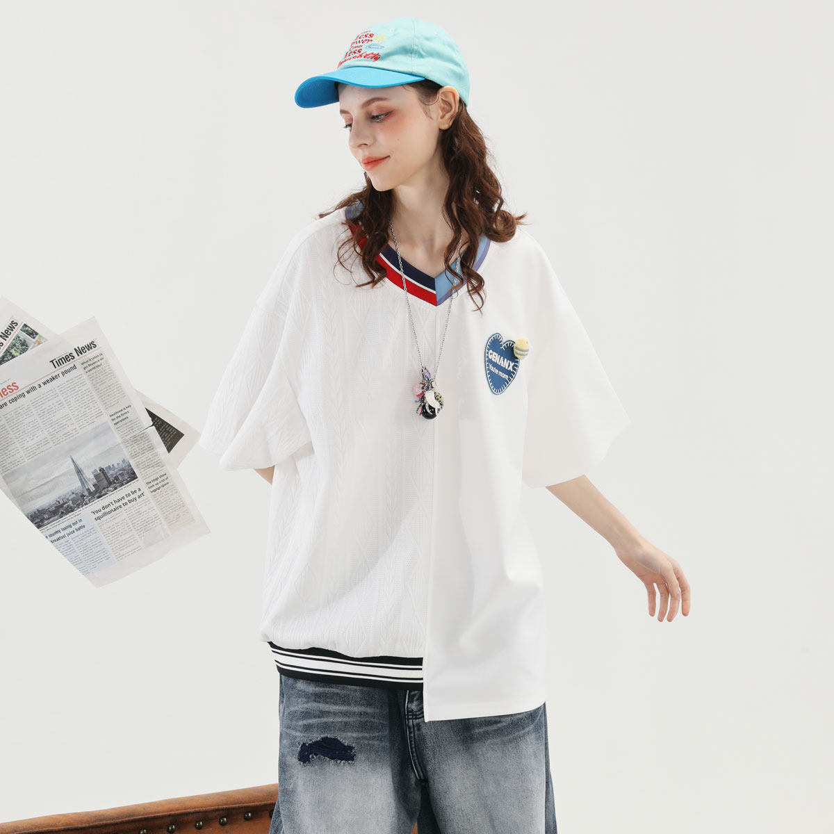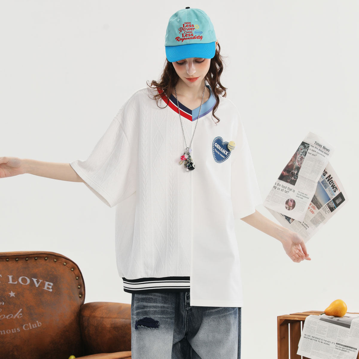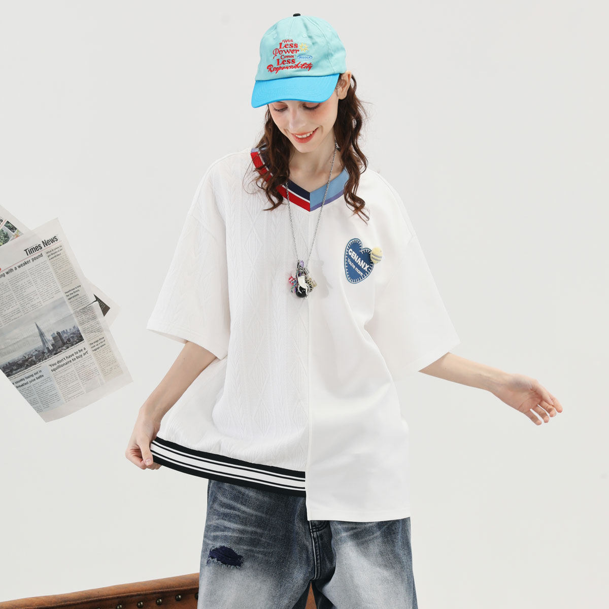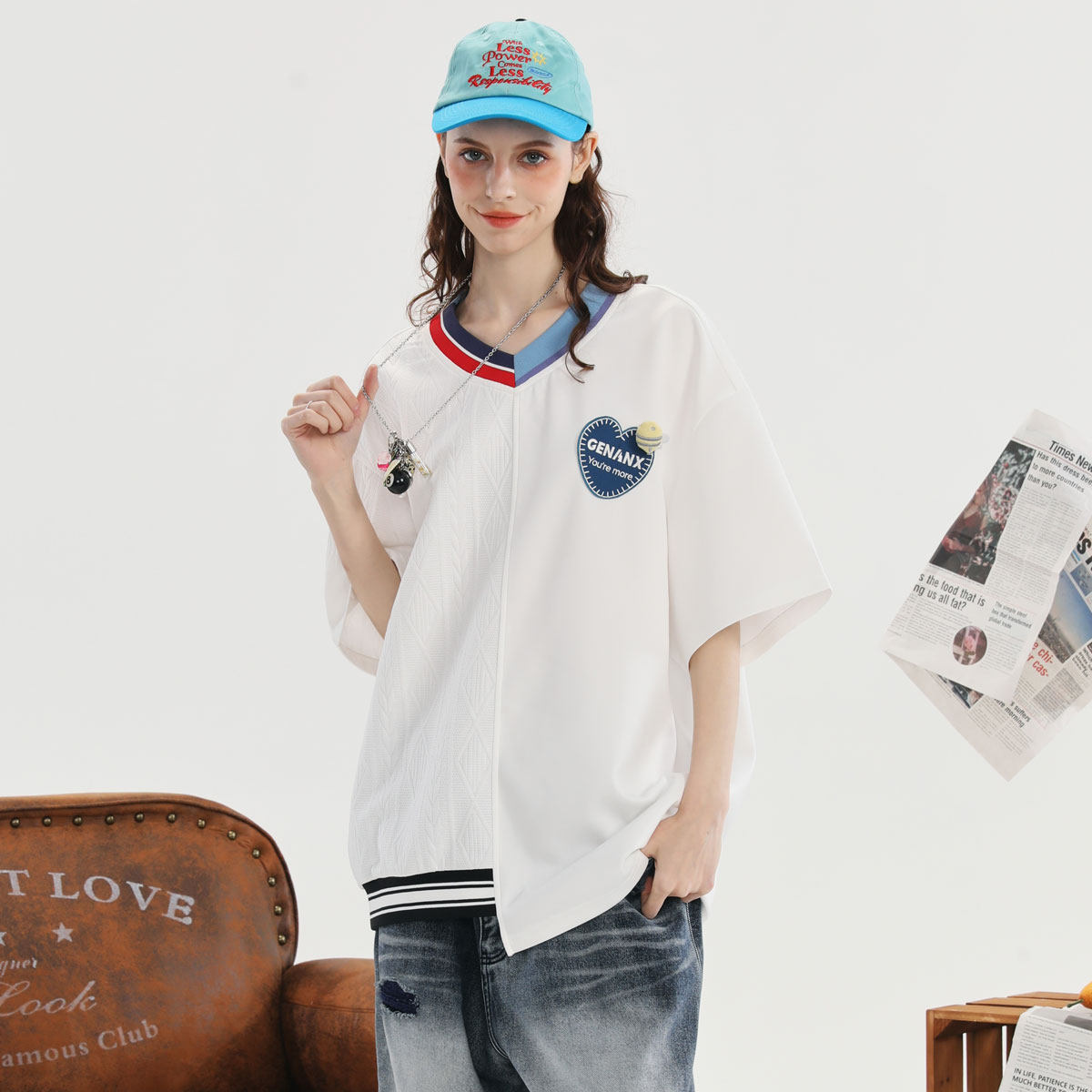 GENANX闪电潮牌25夏季新款陈浚铭同款宽松高级拼接白色情侣装T恤