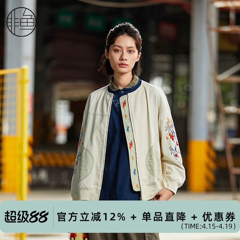 --------------------- 非鱼2024秋季女休闲文艺复古风拉链宽松外套国潮刺绣外套 --------------------- --------------------- 【原价】1458元 【券后价】478元