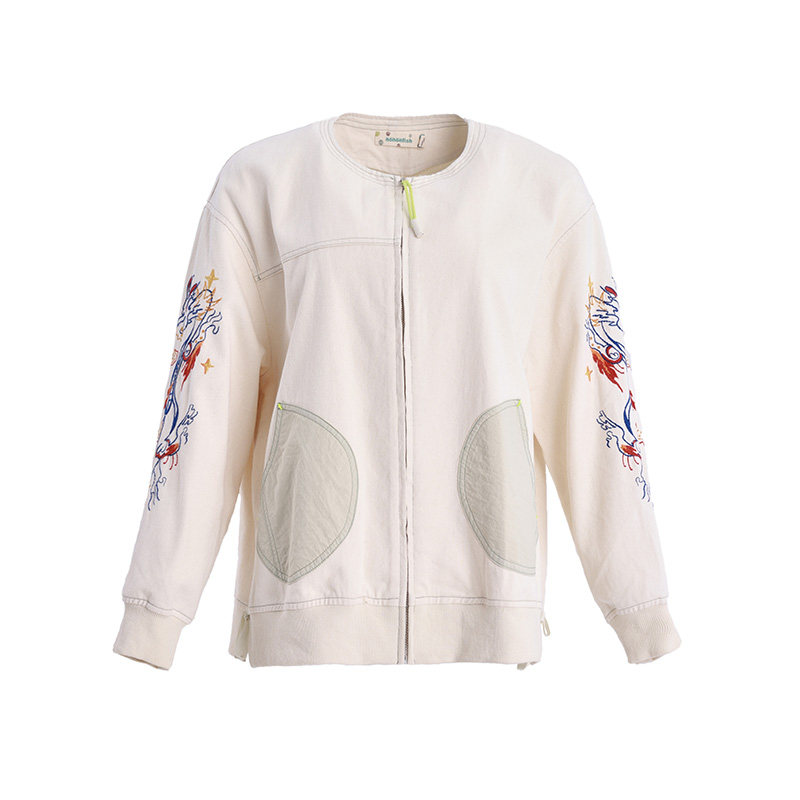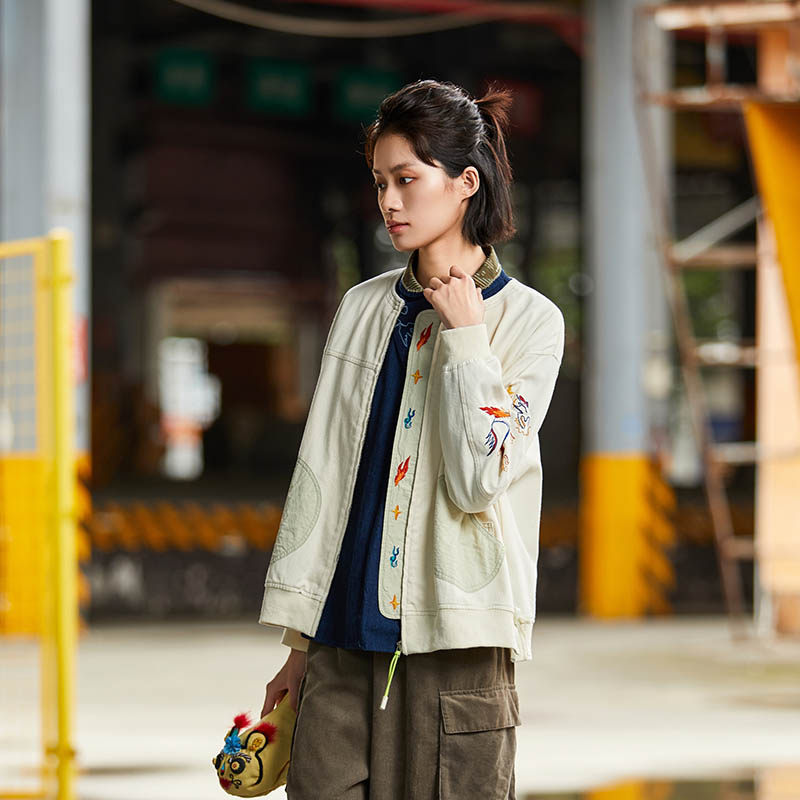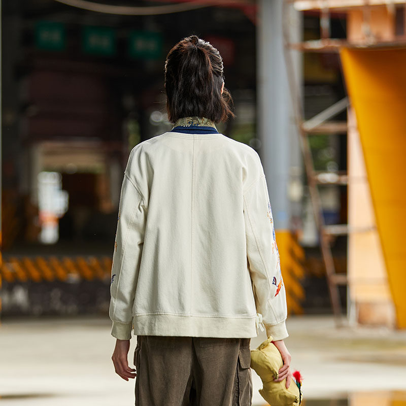 非鱼2024秋季女休闲文艺复古风拉链宽松外套国潮刺绣外套