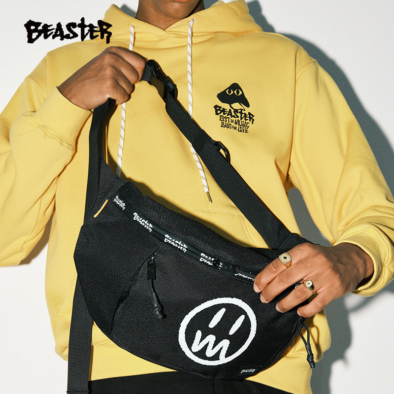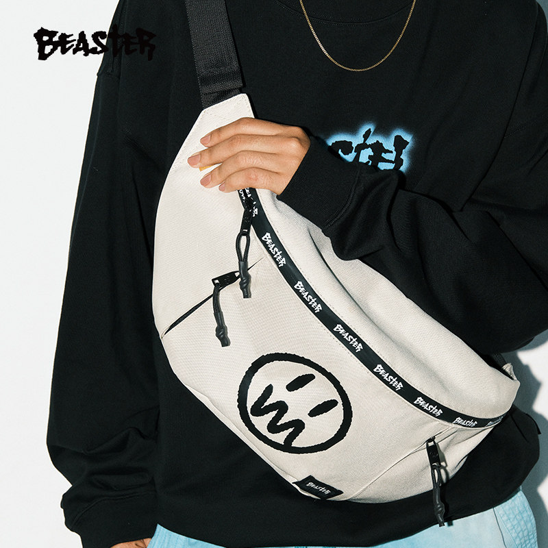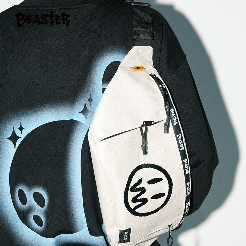 BEASTER鬼脸logo撞色斜挎包大容量户外运动休闲潮牌百搭男士胸包
