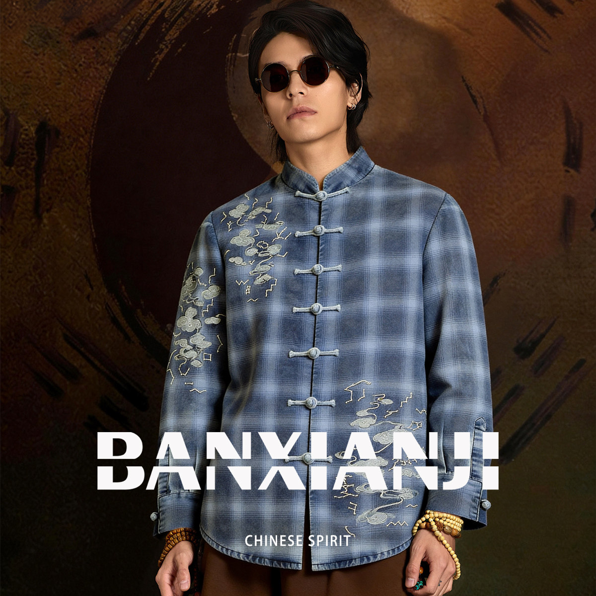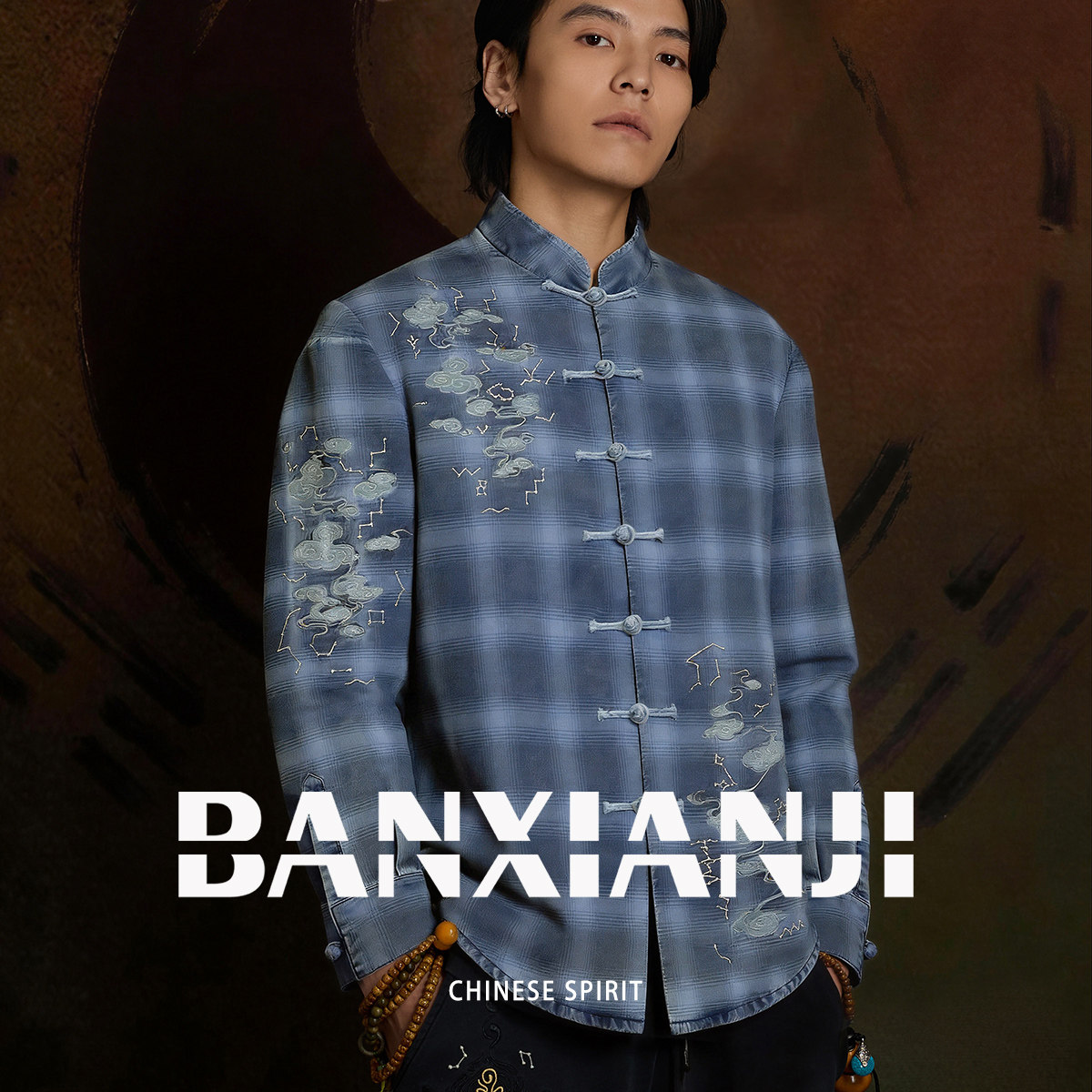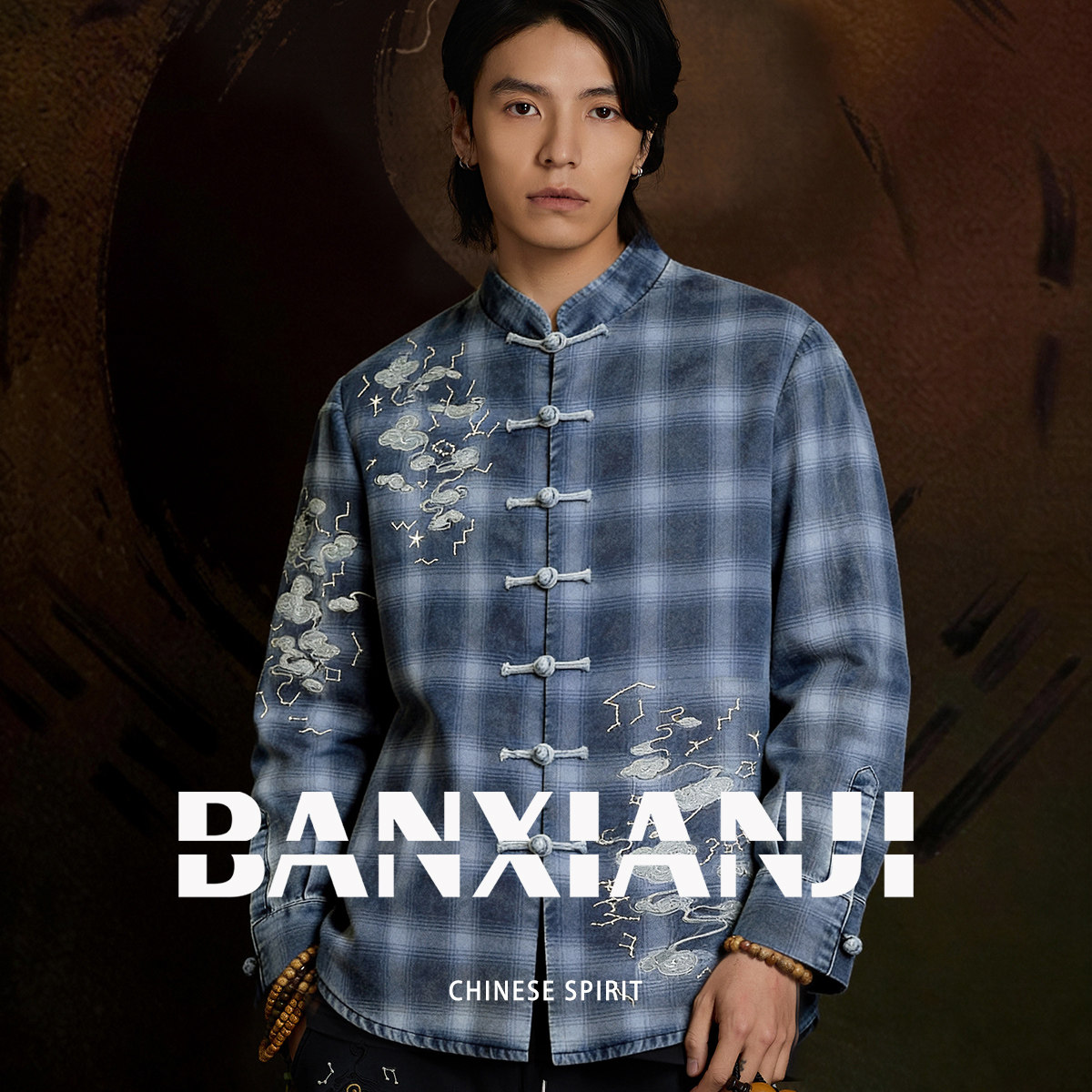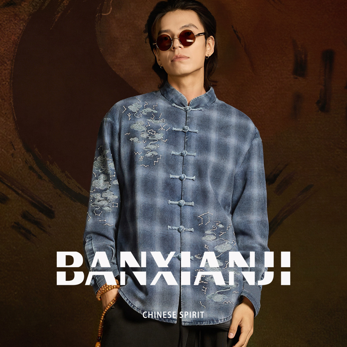 淘宝半闲集春季新款<云梦>衬衫新中式格子衬衫外套刺绣国潮时尚休闲