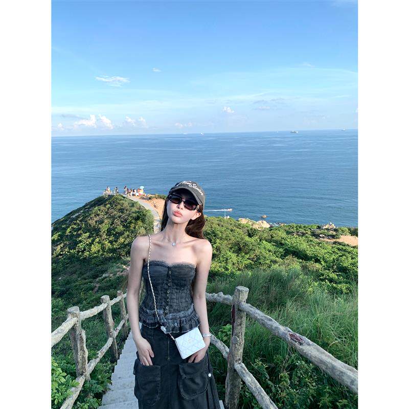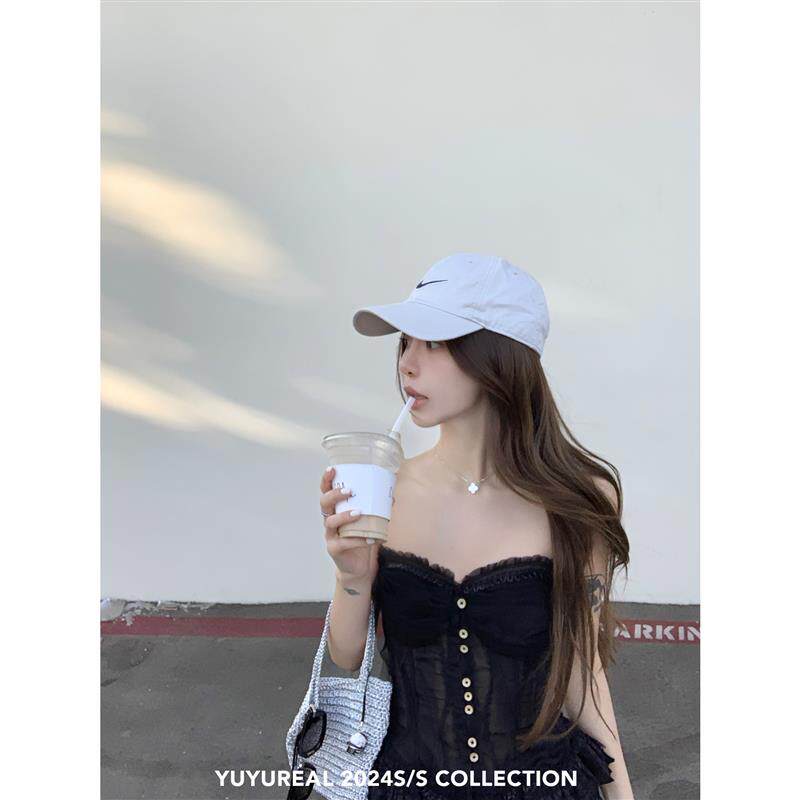 淘宝YUYUREAL日光柔纱一字肩蕾丝花边抹胸背心女夏季修身显瘦无袖上衣