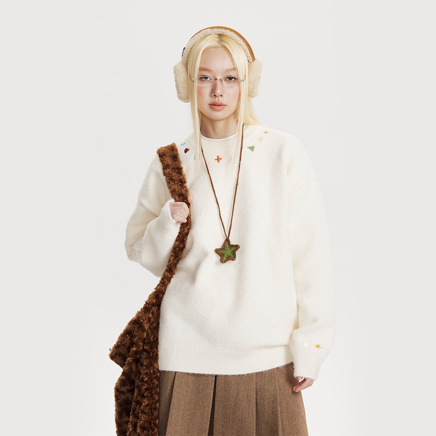 --------------------- 美式复古奶油风复古刺绣圆领毛衣男女情侣款宽松针织衫保暖上衣09 --------------------- --------------------- 【原价】299元 【券后价】134元