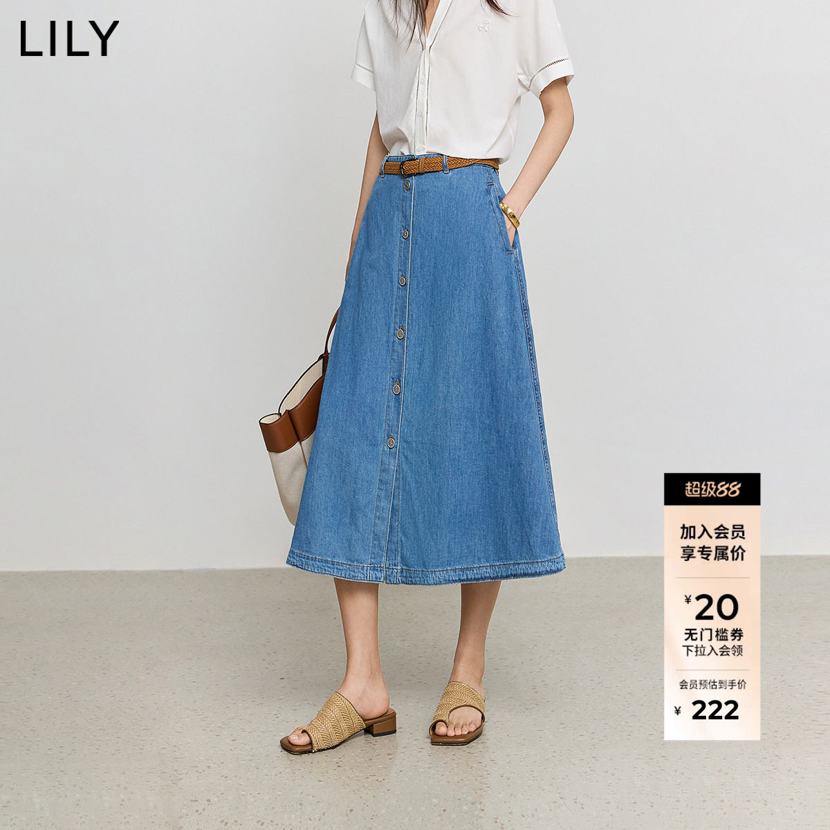 --------------------- 【商场同款】LILY2025新款复古棉麻休闲百搭通勤A字裙半身裙女 【原售价】499元 【现售价】229元 【推荐理由】