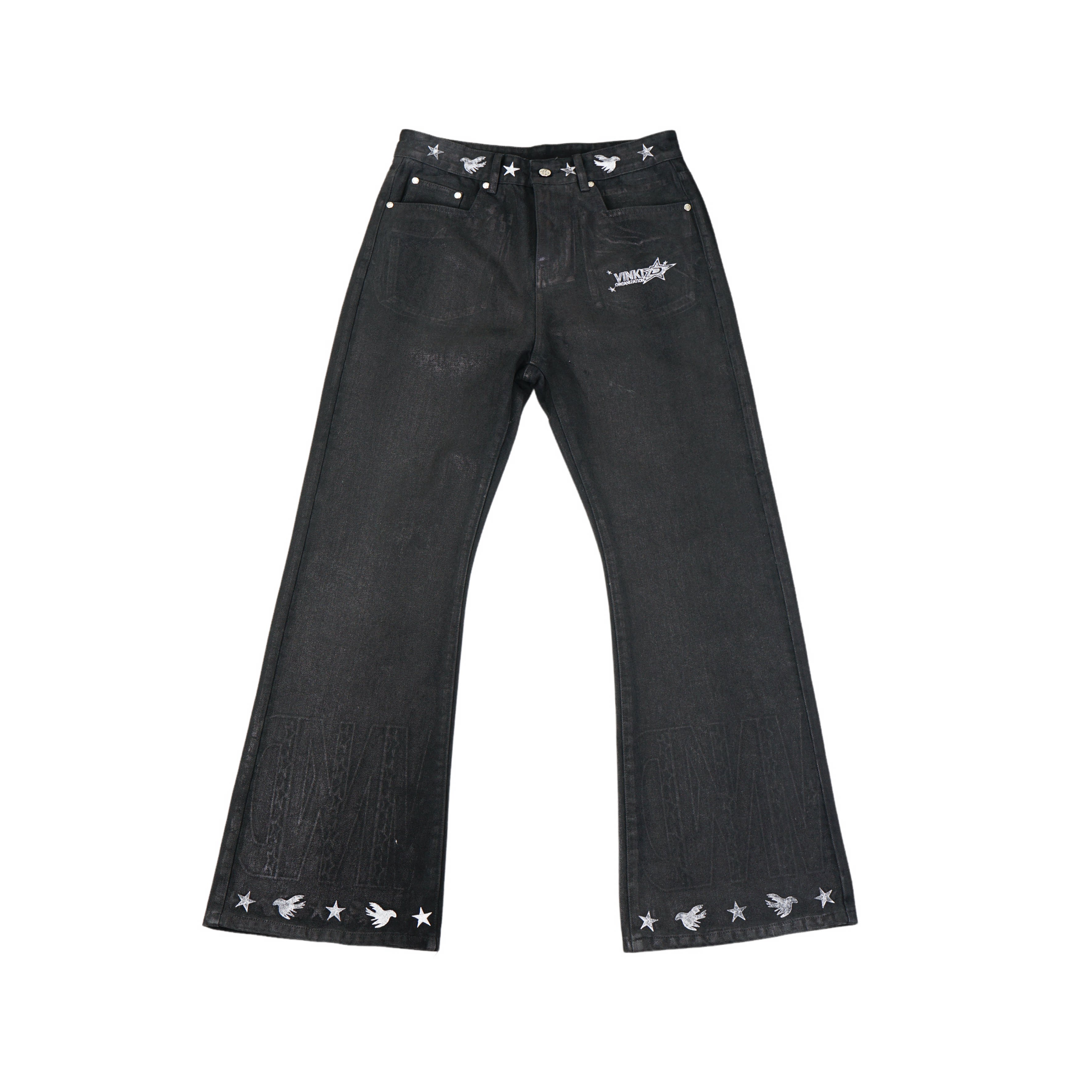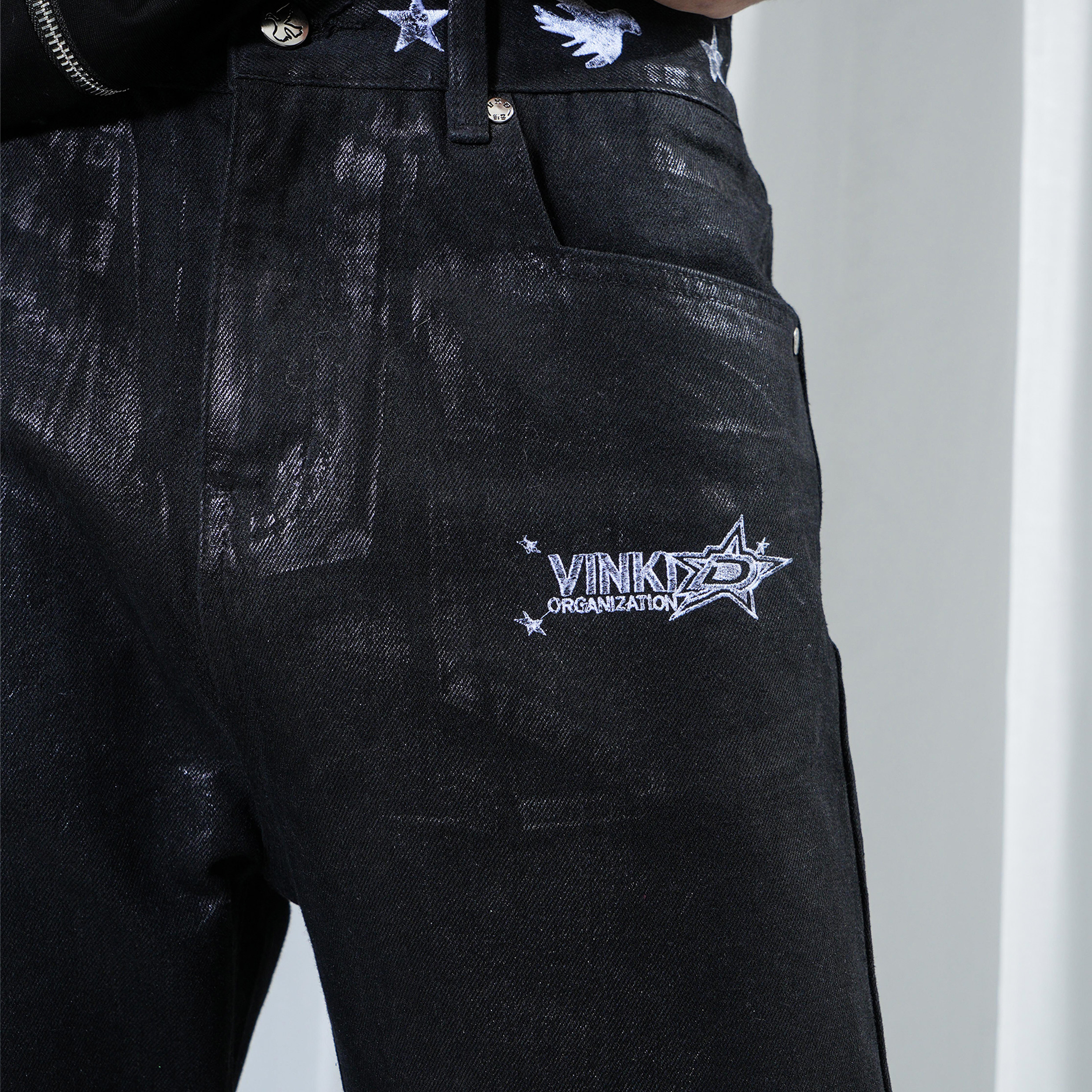 Vinkid(云梯)星VINKID裂纹黑蜡牛仔裤 美式潮流小众国潮长裤