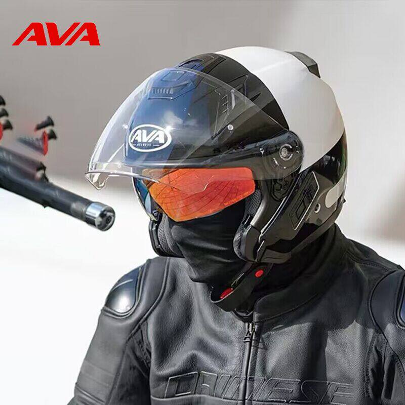AVA头盔摩托车半盔男女双镜片四分之三盔机车组合盔JET3/4盔四季