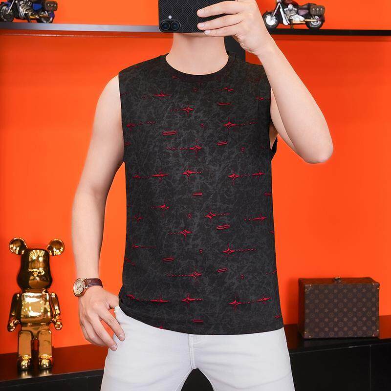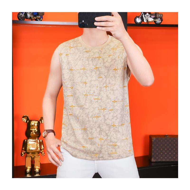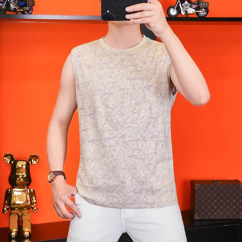 仕咖服装Amphelisia夏轻奢男士无袖双拼色背心风坎肩透气T恤上衣