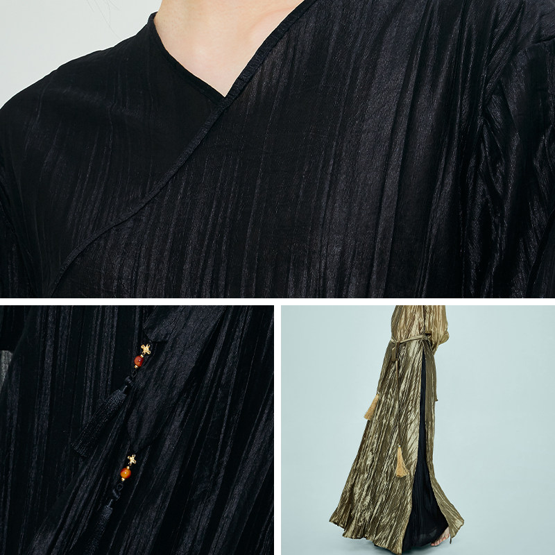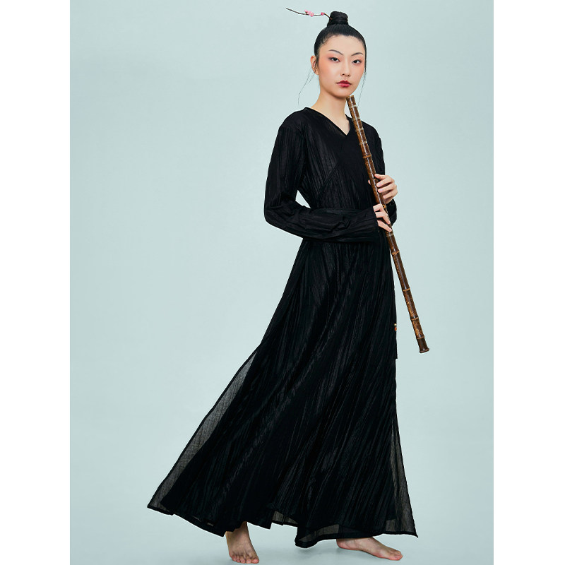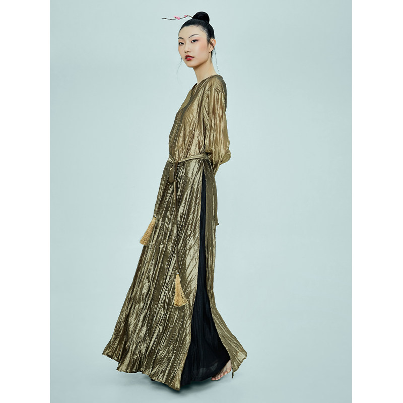 淘宝花椿诗意国潮中国风女连衣裙高腰开叉简约汉服元素改良裙子两件套
