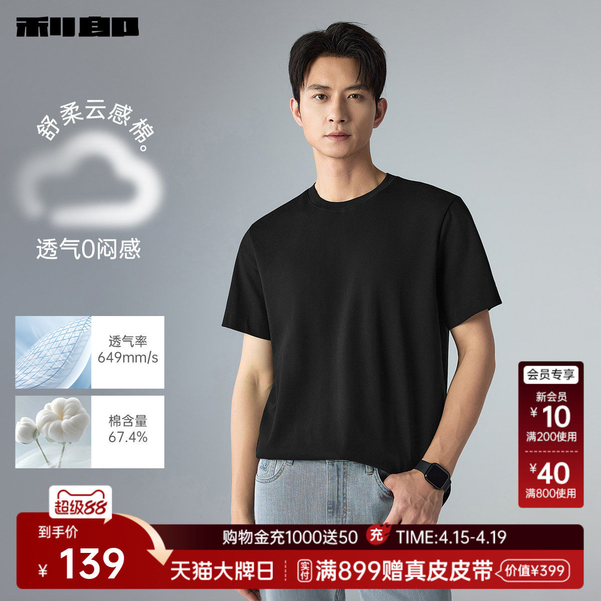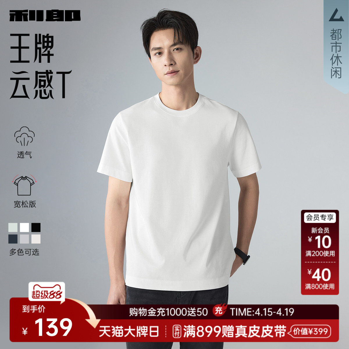 --------------------- 【宽松版】利郎官方短袖T恤男士2026夏季新款白色打底半袖男装 --------------------- --------------------- 【原价】339元 【券后价】129元