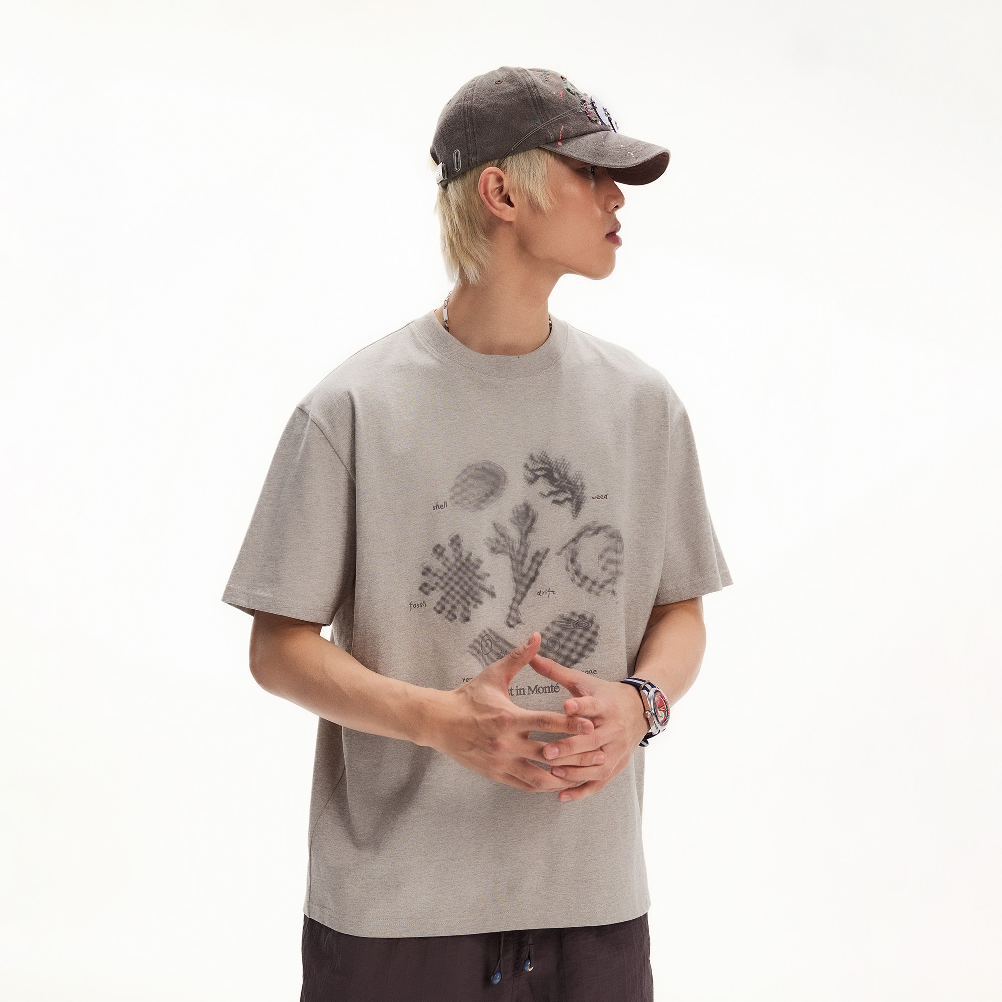 瞬时山野Monterest户外5A抗菌空钓日志印花宽松徒步运动短袖T恤男