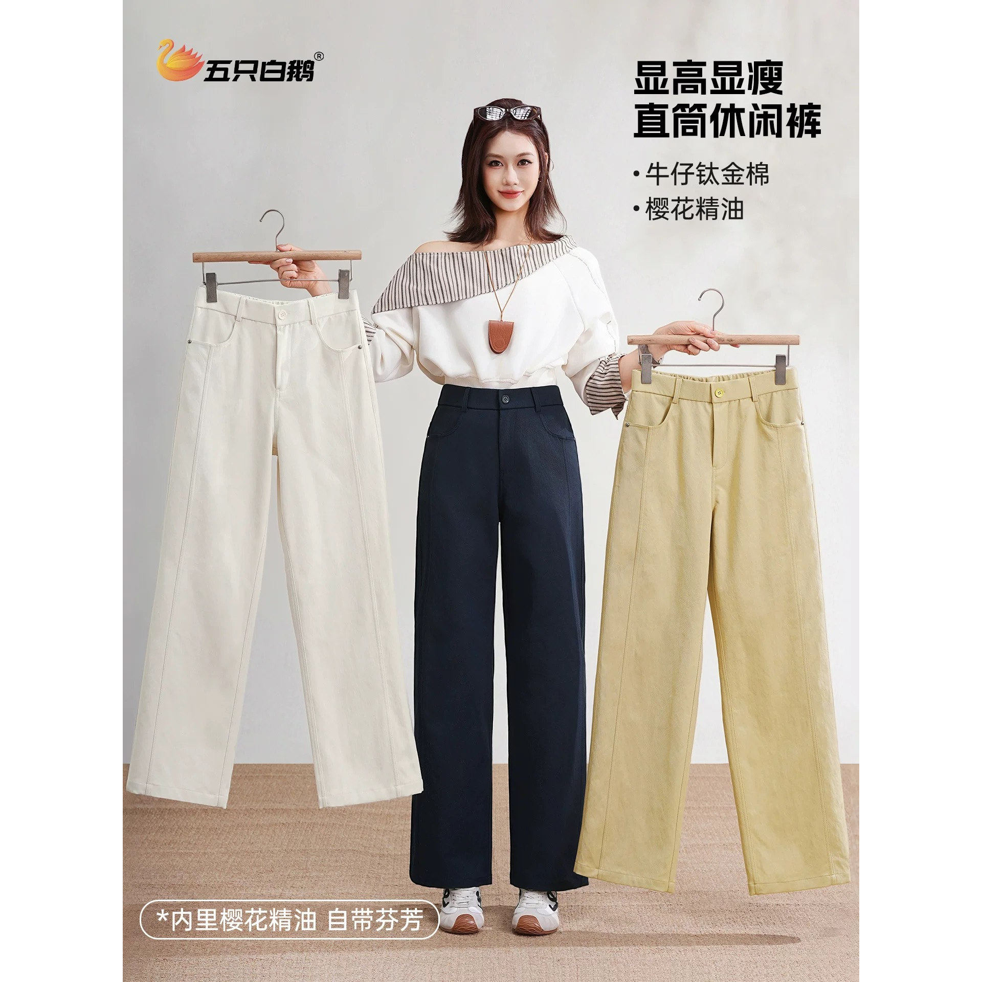 【春夏薄款】2026年新款五只白鹅樱花裤钛金棉免熨抗皱休闲直筒裤