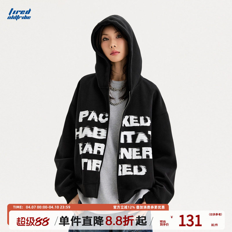 --------------------- TIRED美式开衫卫衣情侣款cleanfit短版连帽长袖宽松休闲外套上衣 【原售价】159元 【现售价】131元 【推荐理由】