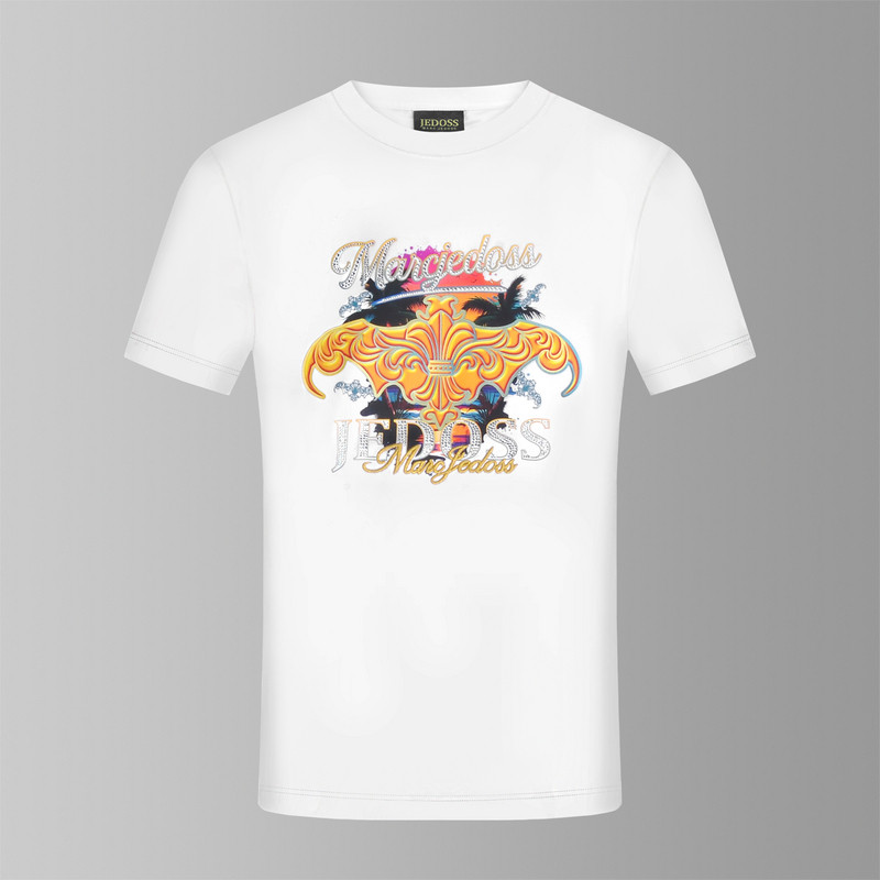 JEDOSS/爵迪斯男装2026春夏新款炫彩LOGO海景数码印花短袖T恤006