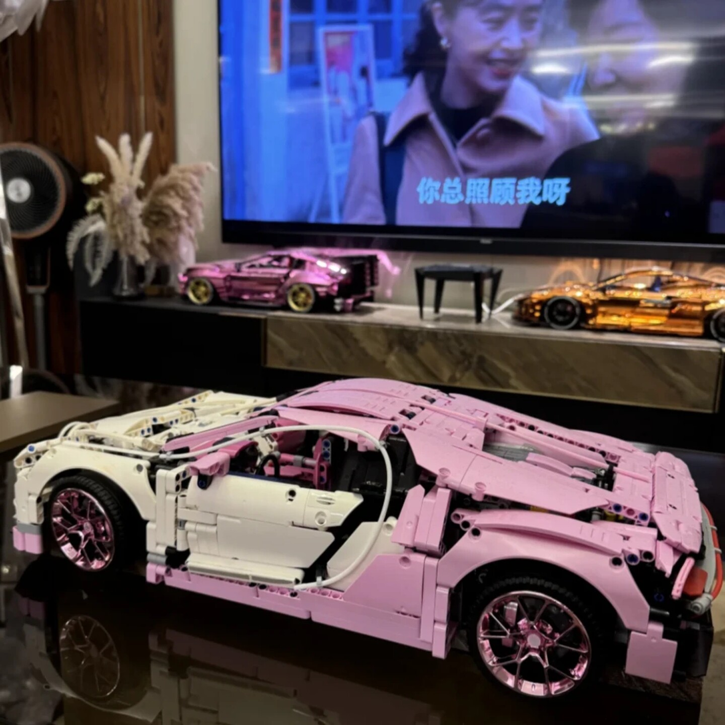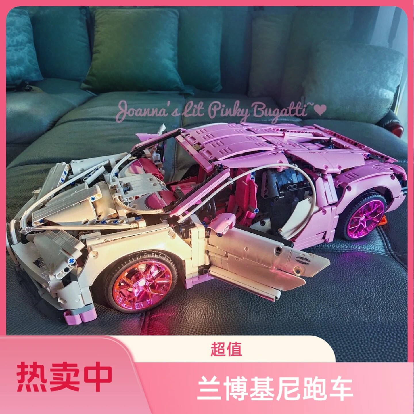 布加迪超级跑车渐变粉典藏版积木玩具男孩机械组模型赛车拼装汽车