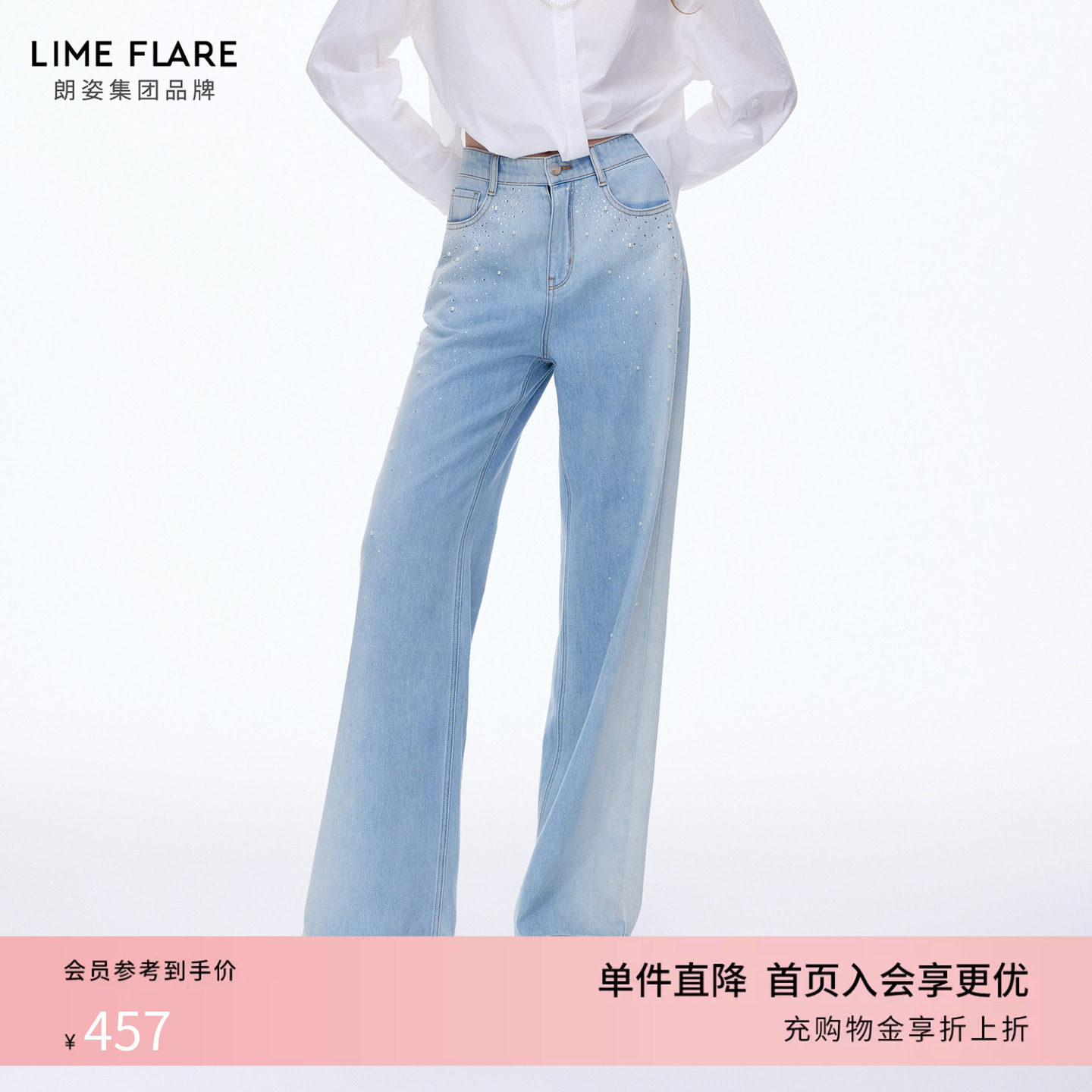 朗姿莱茵福莱尔手工钉珠莱赛尔直筒牛仔裤休闲宽松阔腿裤26春新款