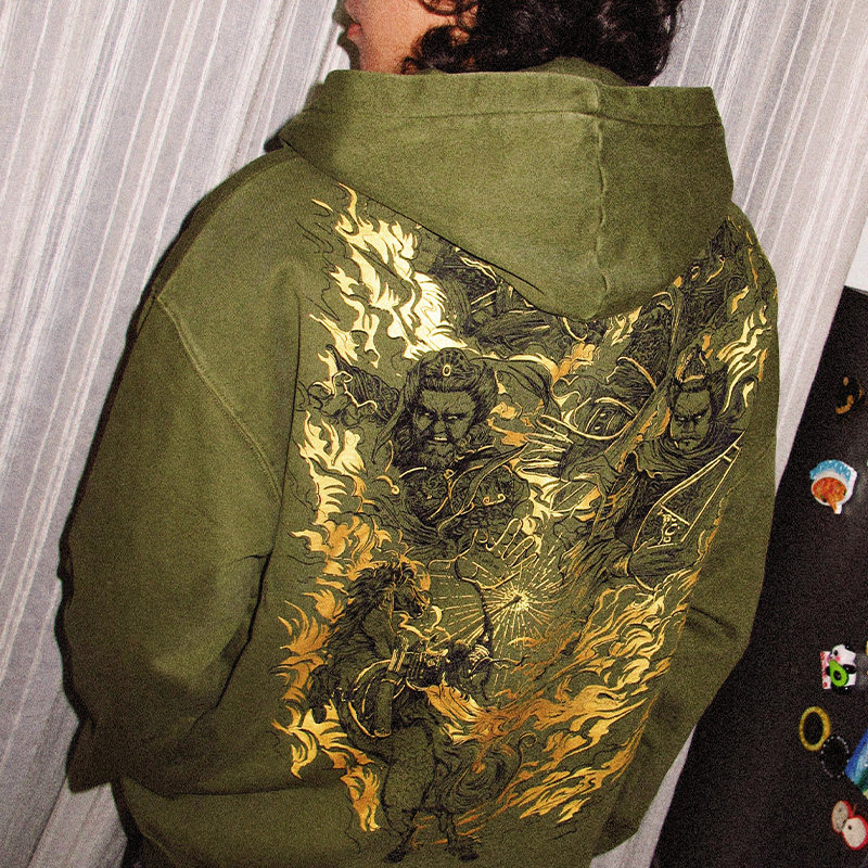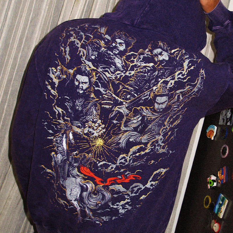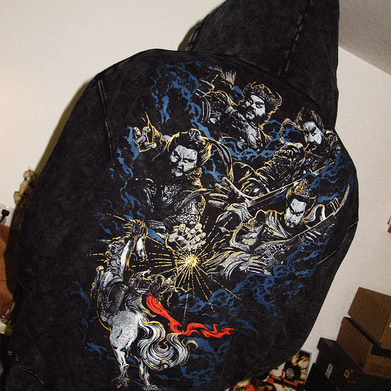 --------------------- TEE7-封神演义姬发大战四天王国潮卫衣水洗做旧烫金拉链帽衫 【原售价】352元 【现售价】299元 【推荐理由】