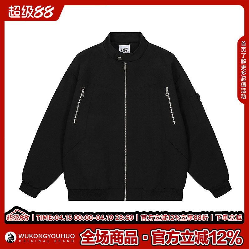 淘宝悟空有货美式高街立领工装飞行员夹克男潮牌拉链设计感棒球服外套