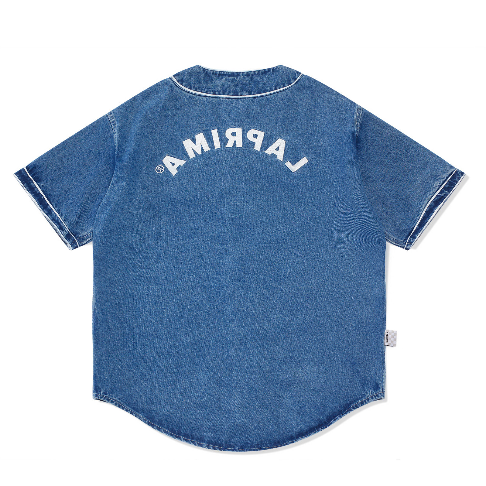 LAPRIMA BU SHIRT DENIM 牛仔棒球衫美式复古镜像刺绣CITYBOY衬衣
