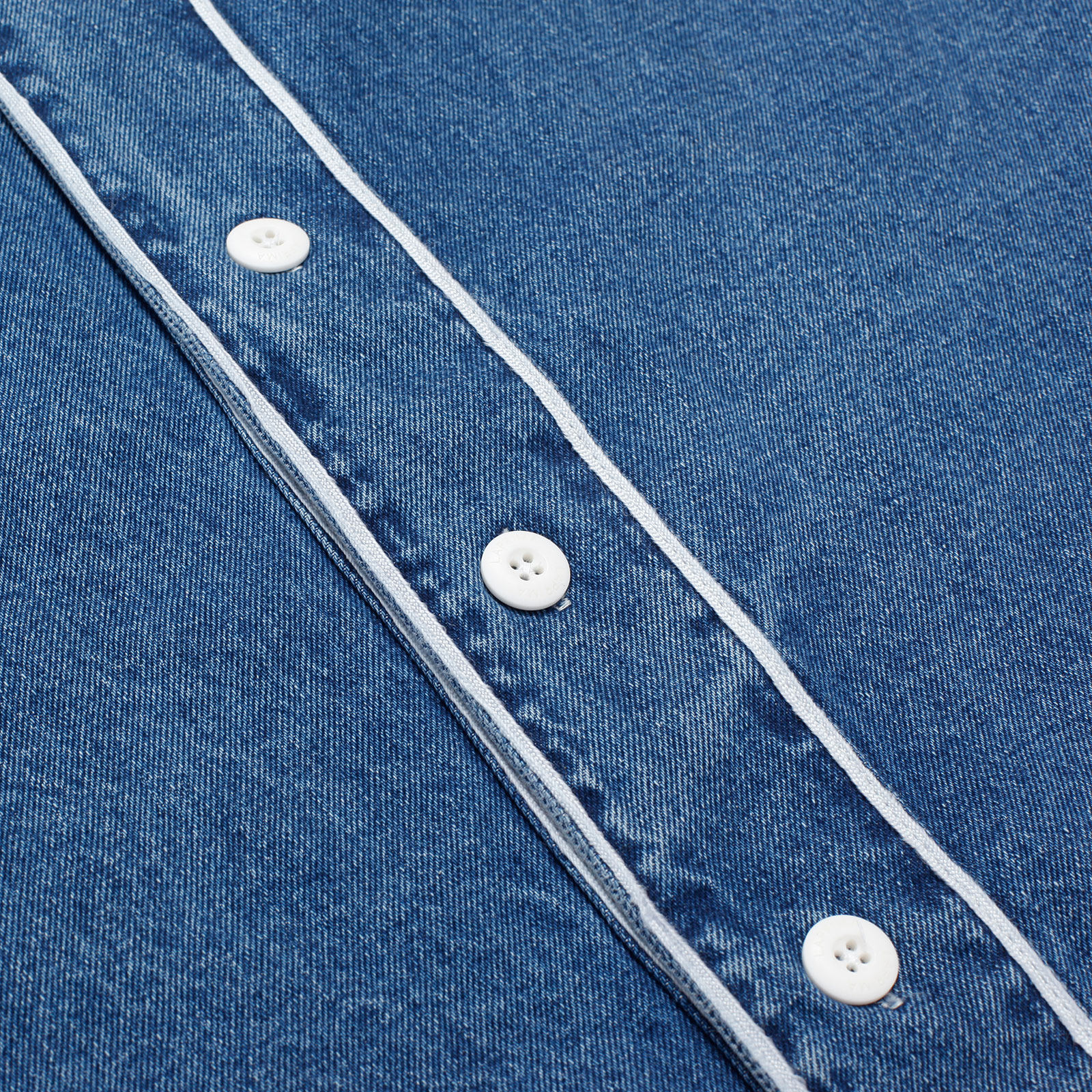 --------------------- LAPRIMA BU SHIRT DENIM 牛仔棒球衫美式复古镜像刺绣CITYBOY衬衣 【原售价】1423元 【现售价】1252元 【推荐理由】