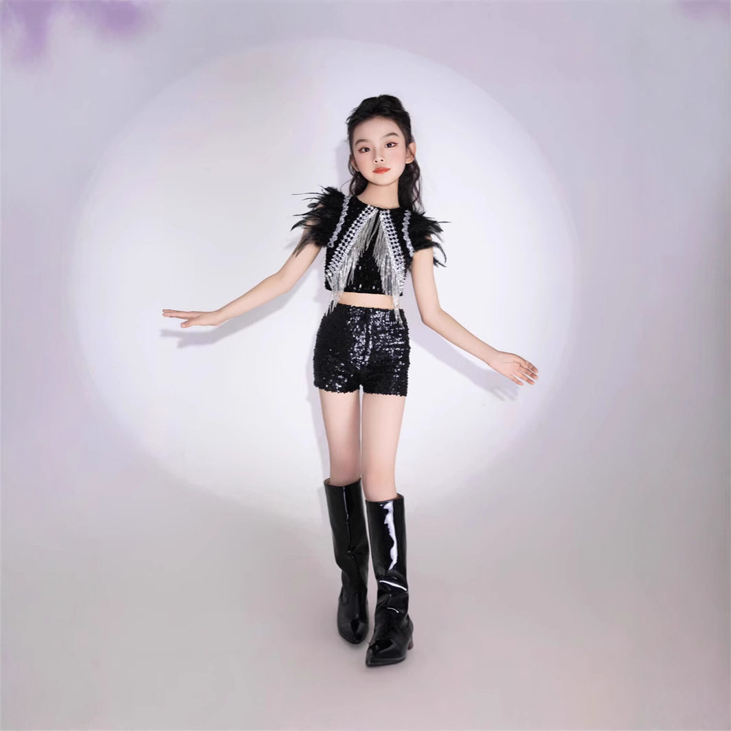--------------------- 儿童T台模特走秀服黑色亮片拖尾潮服PK赛服疾风运动酷帅套装拍摄 【原售价】239元 【现售价】139元 【推荐理由】