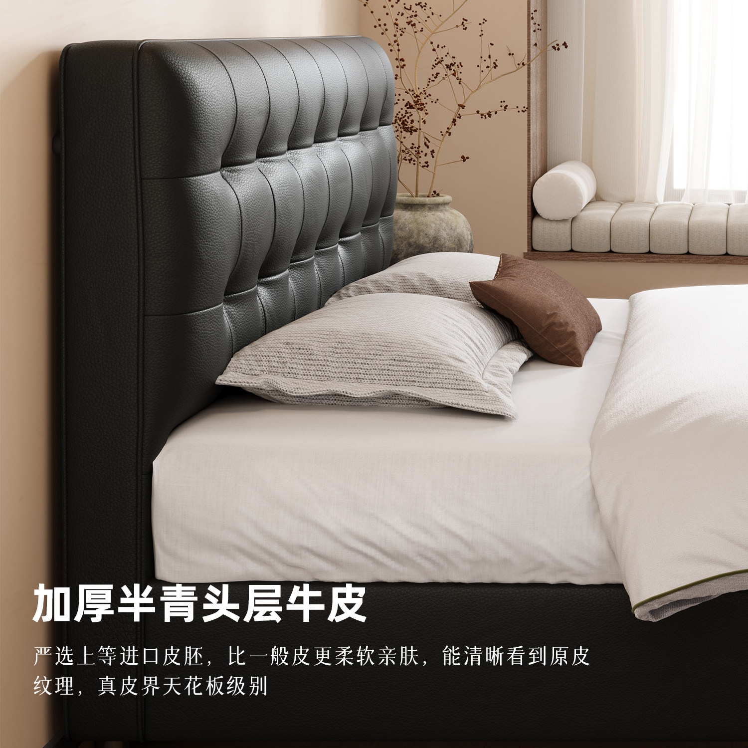 --------------------- 龙凤家居华夫格真皮床法式复古双人卧室床储物轻奢齐边床LFS001 --------------------- --------------------- 【原价】2979元 【券后价】2502元