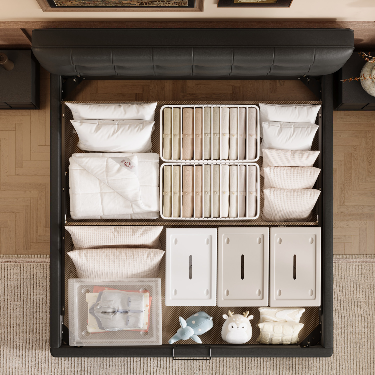龙凤家居华夫格真皮床法式复古双人卧室床储物轻奢齐边床LFS001