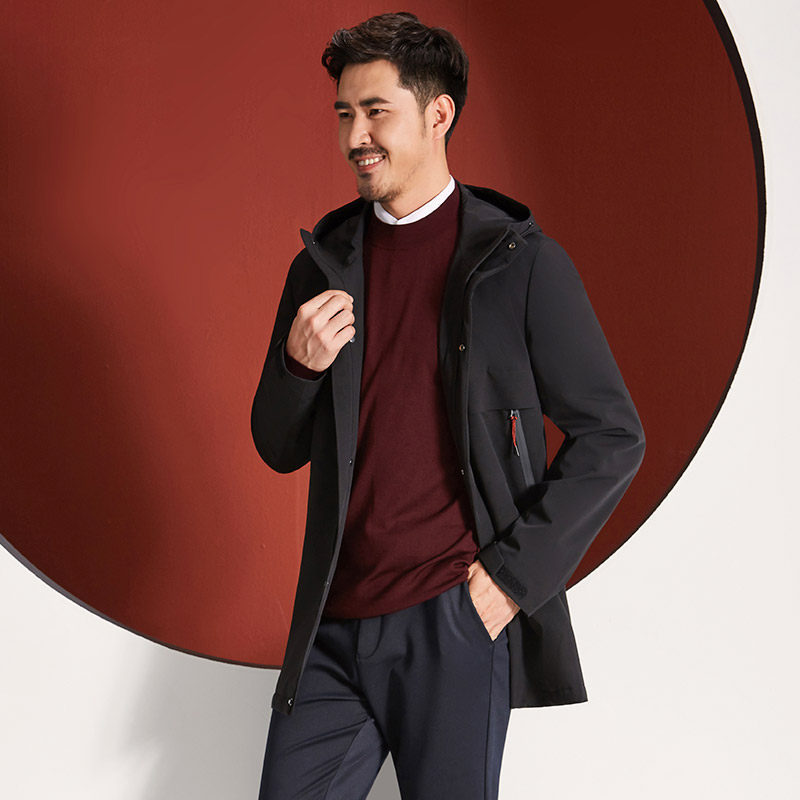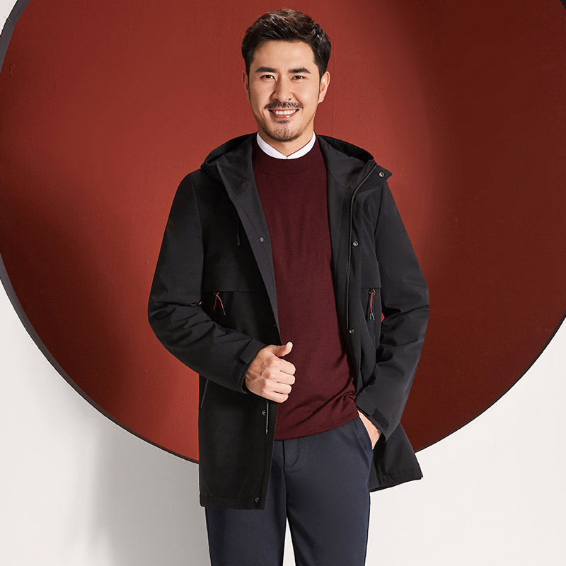 --------------------- 红都秋冬新款男士风衣男装连帽外套休闲中年风衣男 【原售价】1180元 【现售价】519元 【推荐理由】