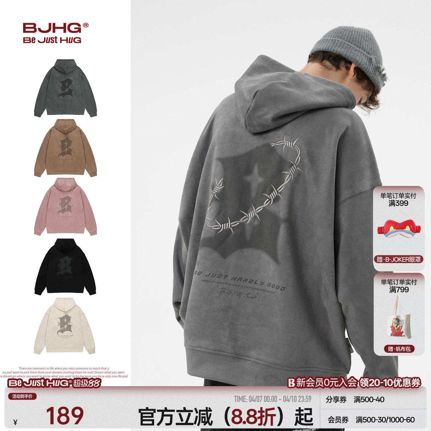 --------------------- BJHG不计后果连帽卫衣男款春季美式复古新款潮宽松休闲情侣外套女 【原售价】309元 【现售价】189元 【推荐理由】