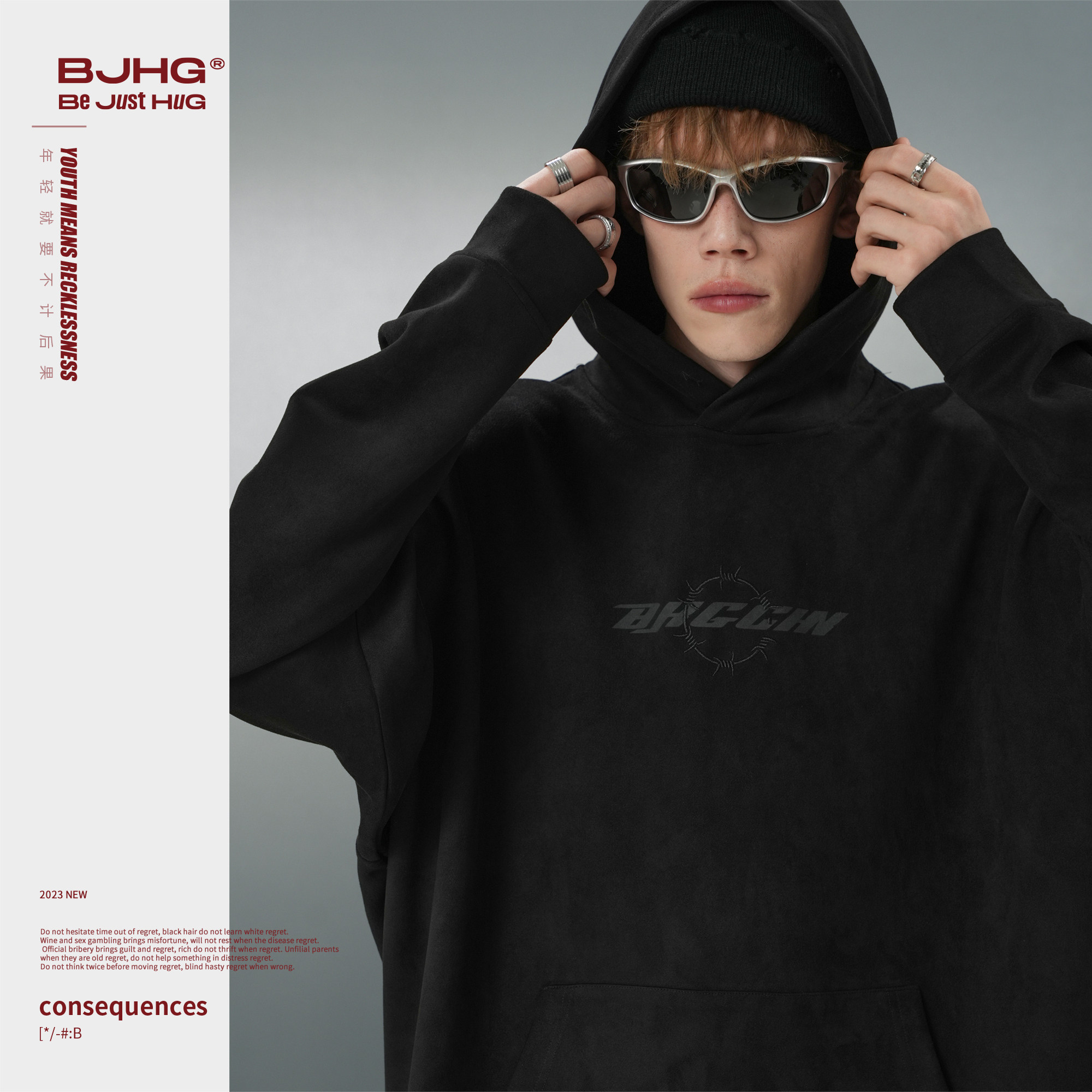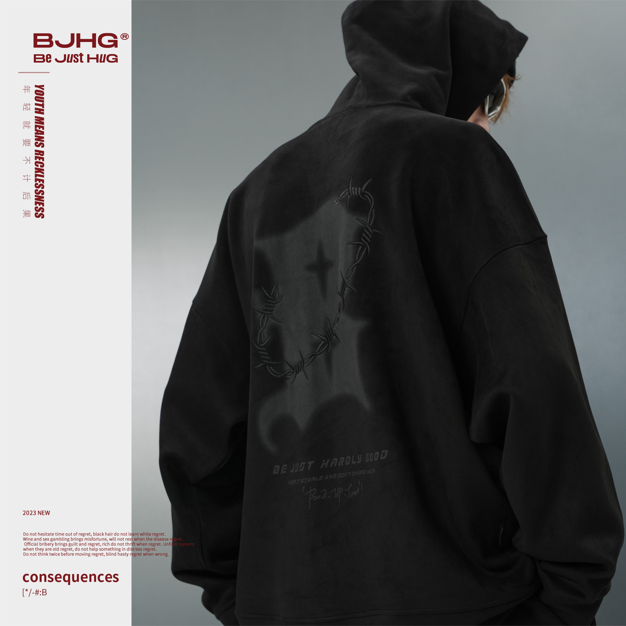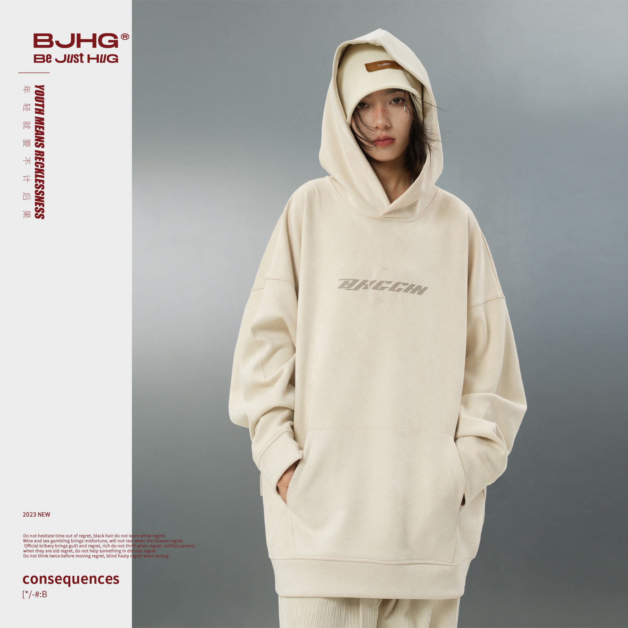 BJHG不计后果连帽卫衣男款春季美式复古新款潮宽松休闲情侣外套女