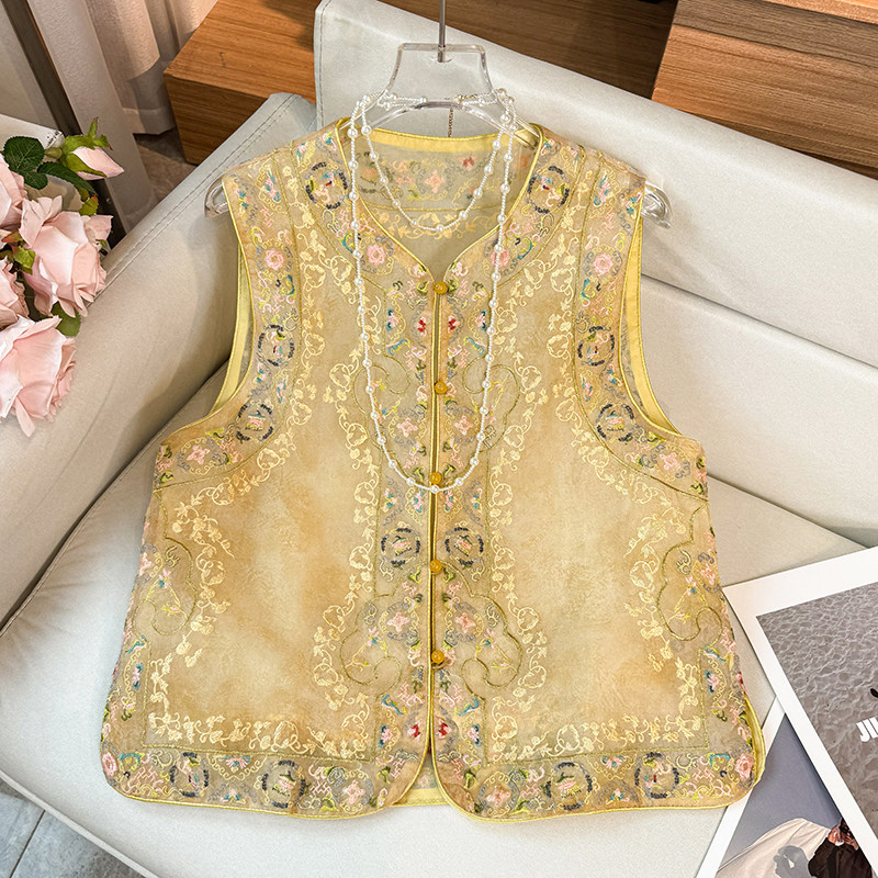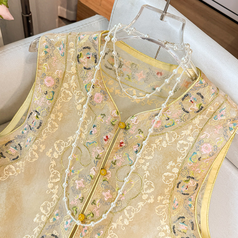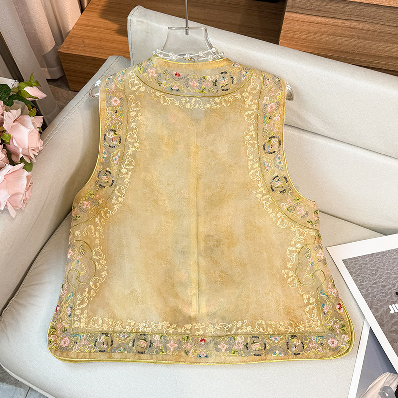 2026夏薄款欧根纱防晒马甲新中式国风轻奢重工刺绣坎肩上衣外套女