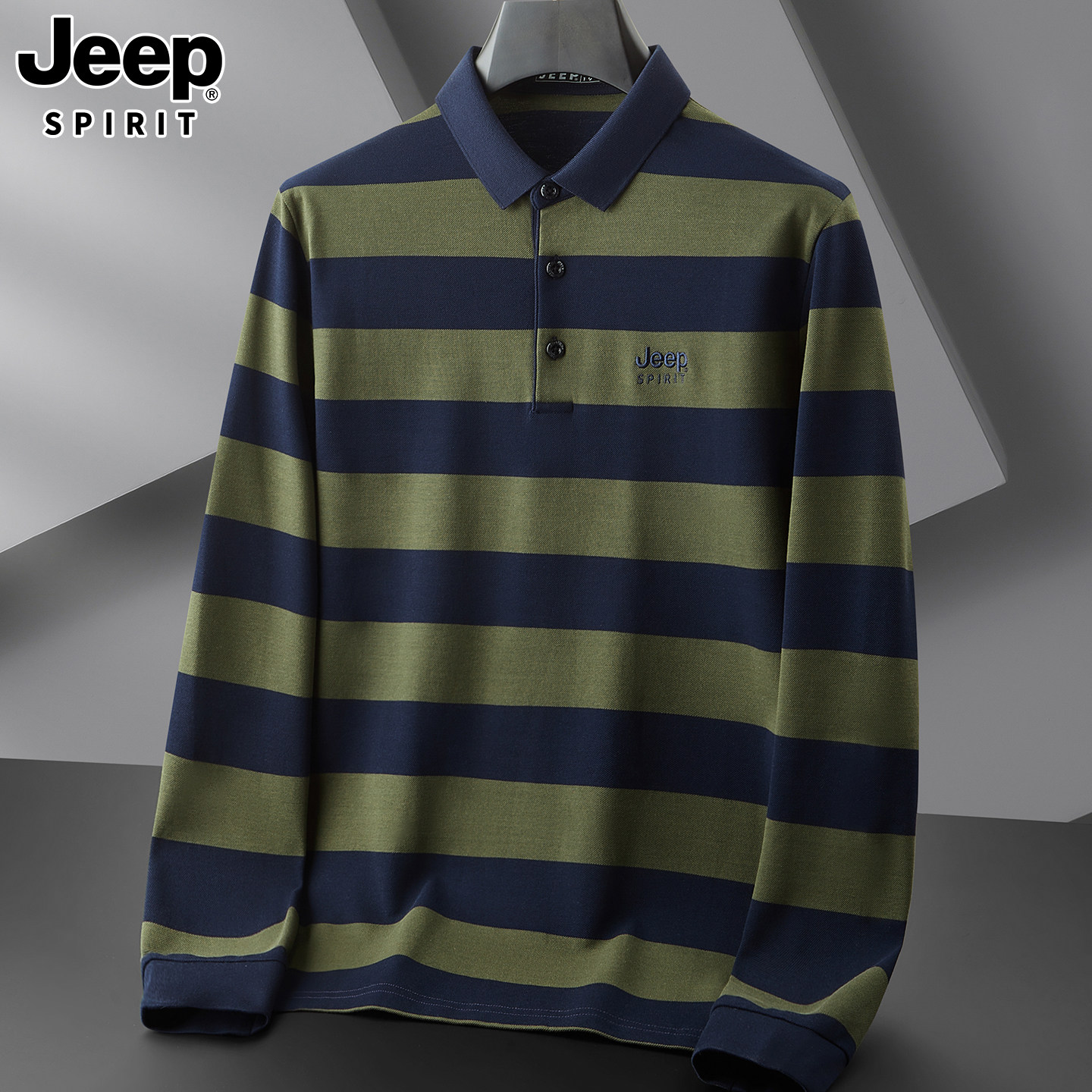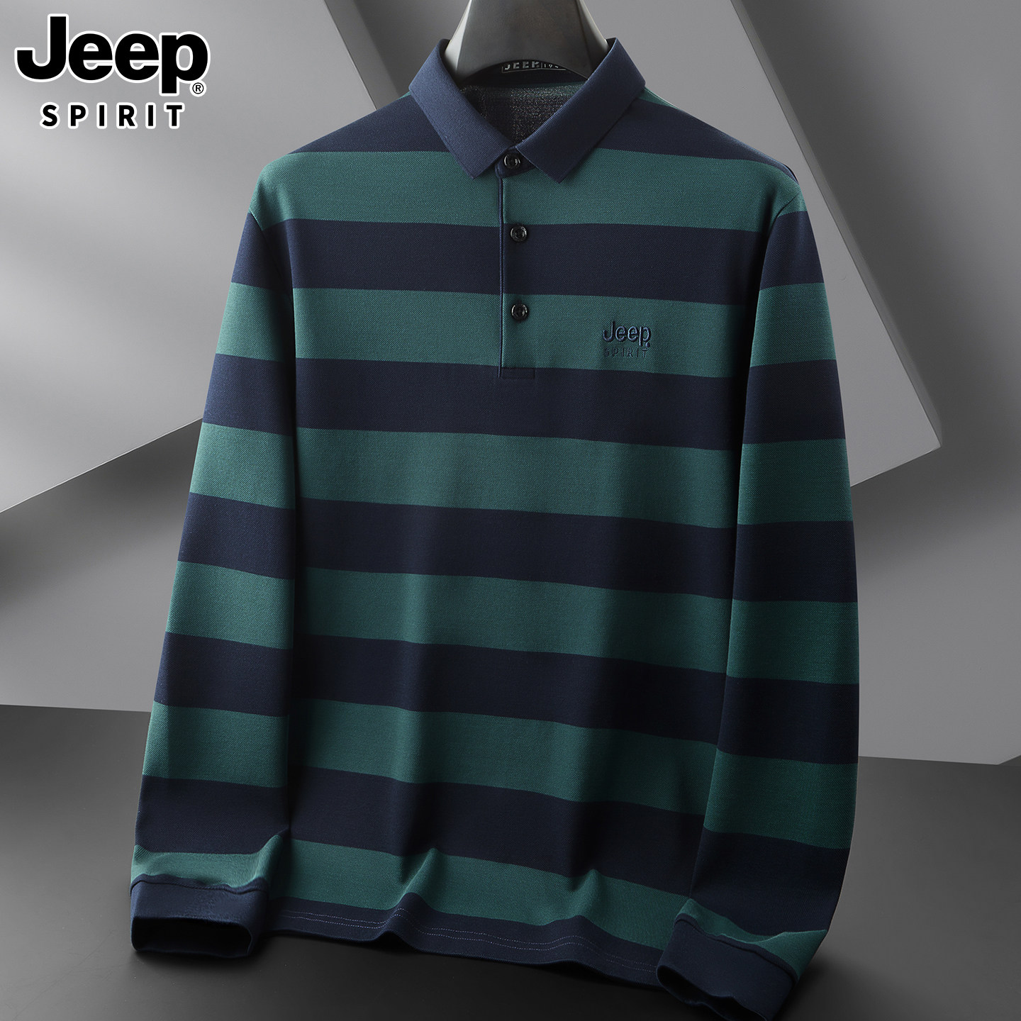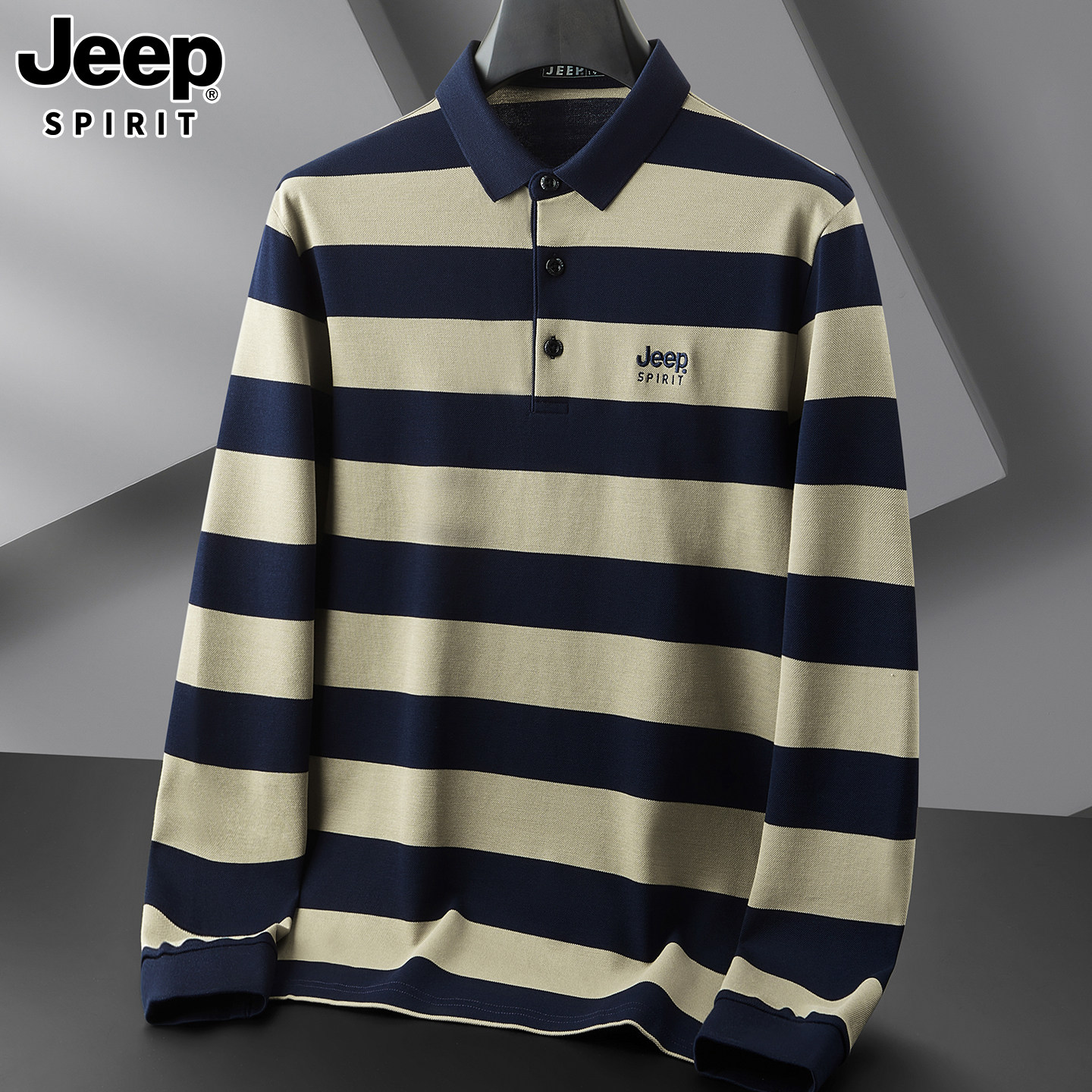 JEEP SPIRIT 秋季新款男士潮流长袖T恤时尚休闲POLO衫刺绣打底衫